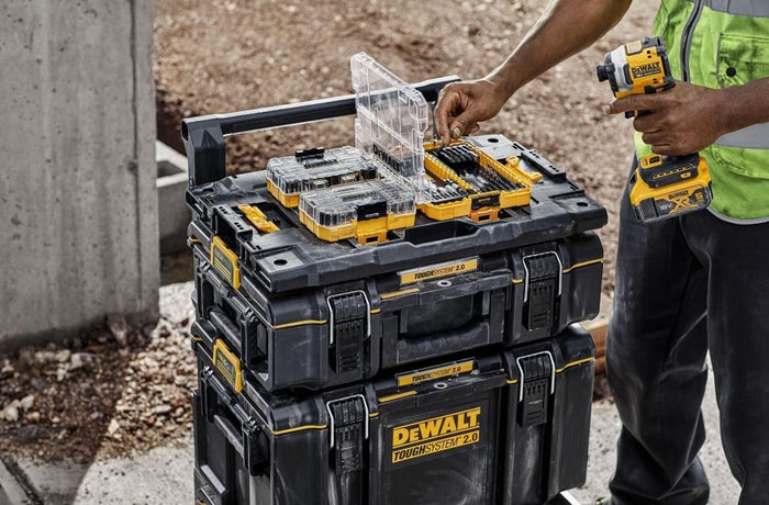 Où que soit votre chantier, DEWALT propose des solutions de rangement mobiles idéales pour protéger, organiser et transporter vos outils. Des caissons renforcés les plus robustes aux systèmes de stockage à emboîtement astucieux, en passant par les sacs en tissu très résistants, nous vous assurons un déplacement facile de vos outils, en toute sécurité.