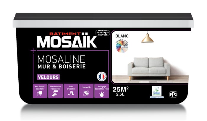 Une gamme complète fabriquée en France répondant à tous vos besoins, parfaite pour les Murs & Plafonds. Existe en plusieurs aspects pour toutes vos envies. Ces peintures de qualité professionnelle seront parfaites pour tous vos chantiers : • Gamme HPO 98% opacité • Gamme HPO toutes pièces, compatibles pièces humides • Gamme MOSALKYDE pour un tendu et une résistance irréprochable