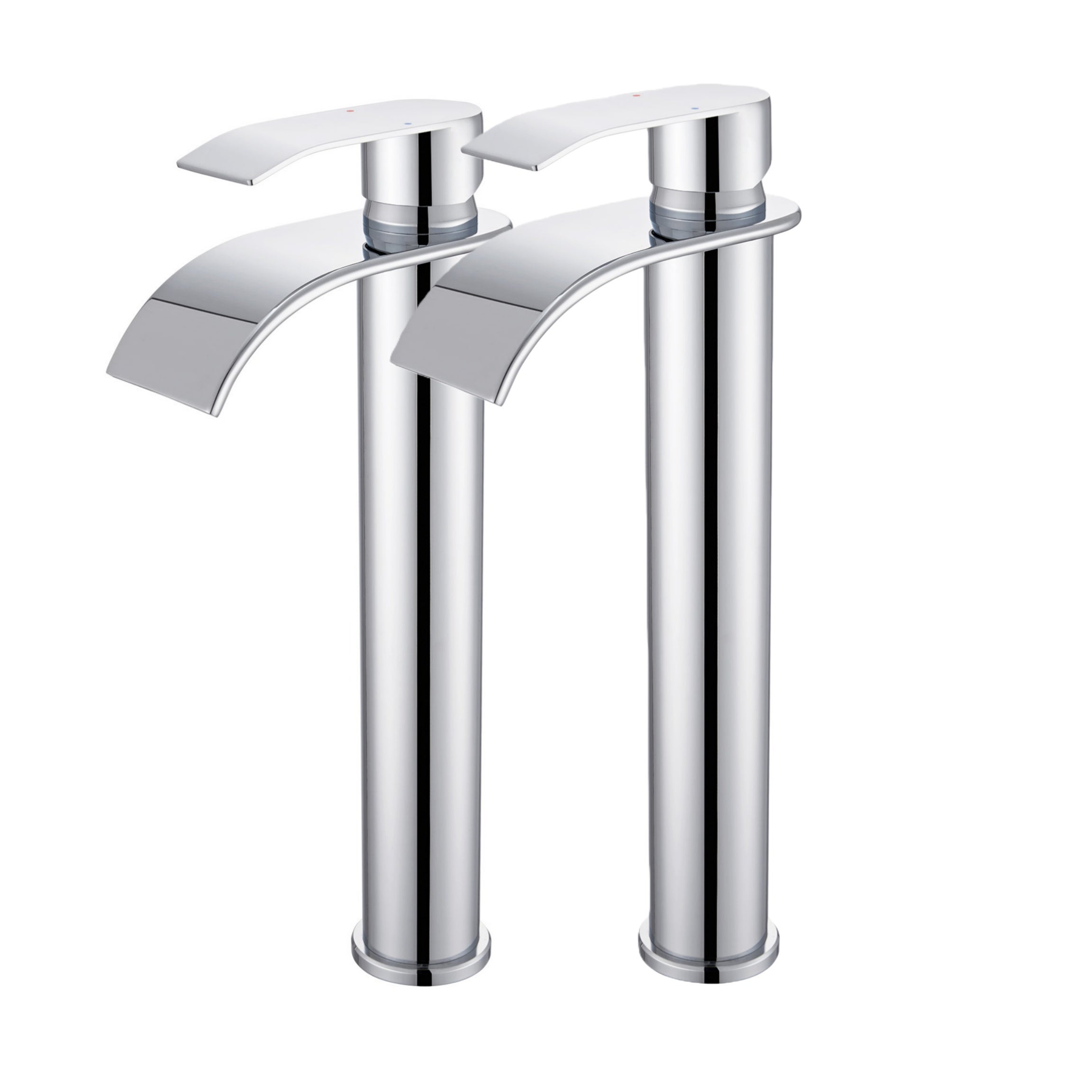 2PCS Mitigeur de lavabo en cascade Robinet de salle de bains chrome Robinet de lavabo en acier inoxydable Robinet de lavabo et vasque haut