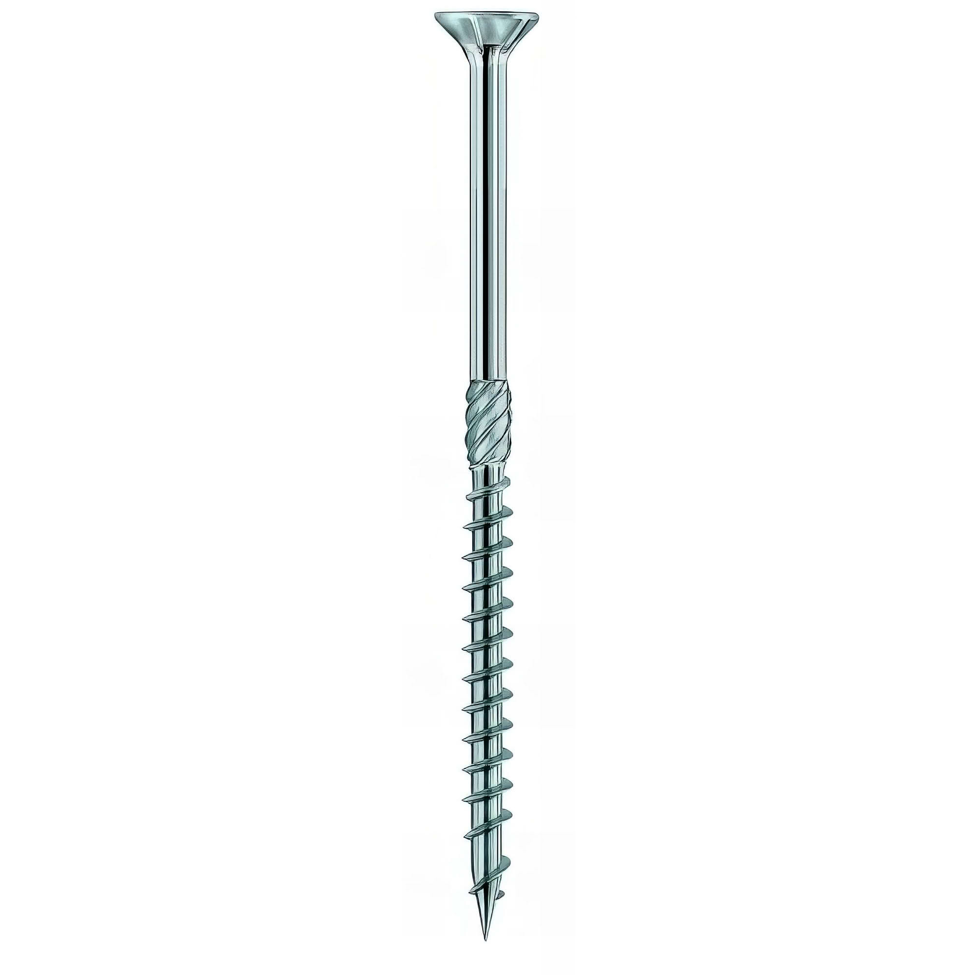 Vis tête fraisée avec ailettes sous la tête. Pointe éfilée pour un pointage précis. Filetage partiel frottant pour faciliter le vissage. Utilisation : Structure bois. Matière : Acier galvanisé blanc (blue+) sans chrome VI utilisable en classe 1 et 2. Empreinte : Torx T50. Epaisseur : 10 mm. Longueur totale vis : 160 mm. Longueur filetage : 80 mm. Diamètre tête : 17,4 mm..