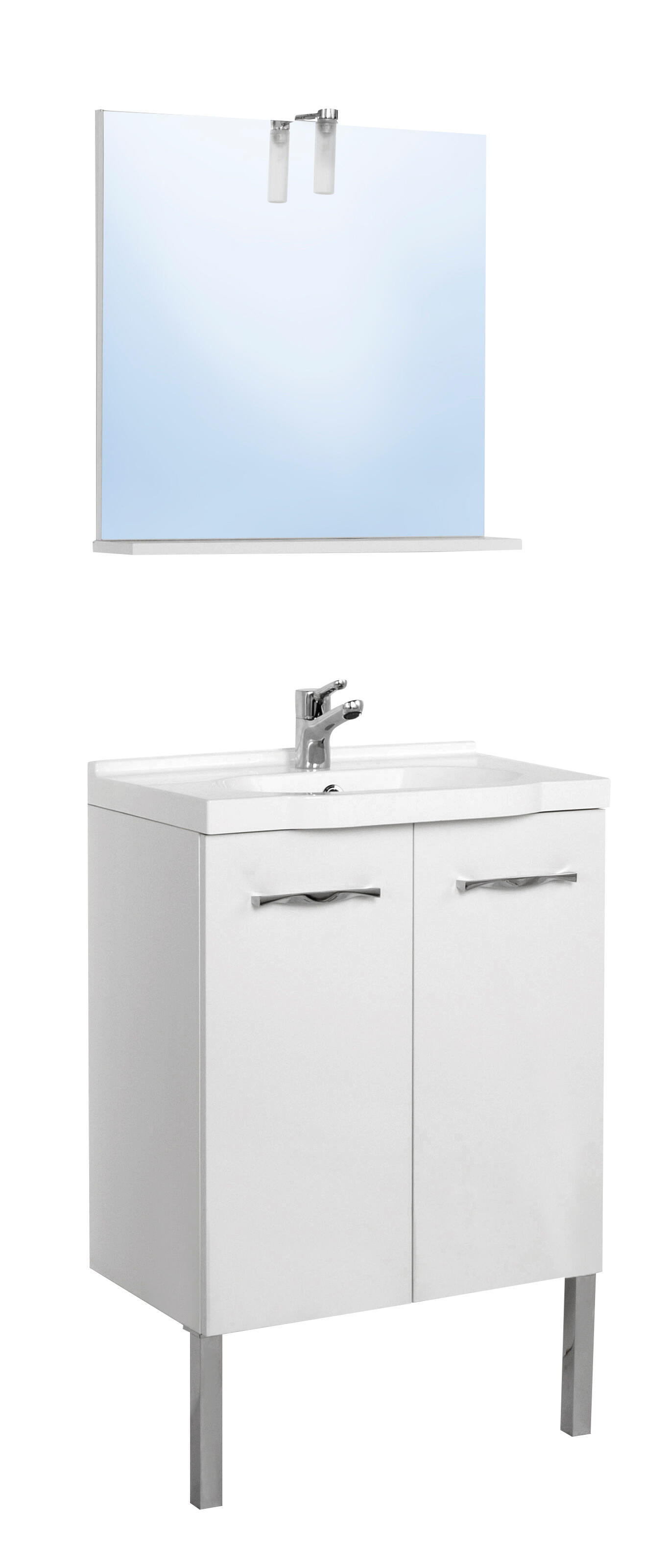 1 porte. Dim : Larg : 45 cm Prof : 15 cm Haut : 60 cm. Etagères en verre intégrées.