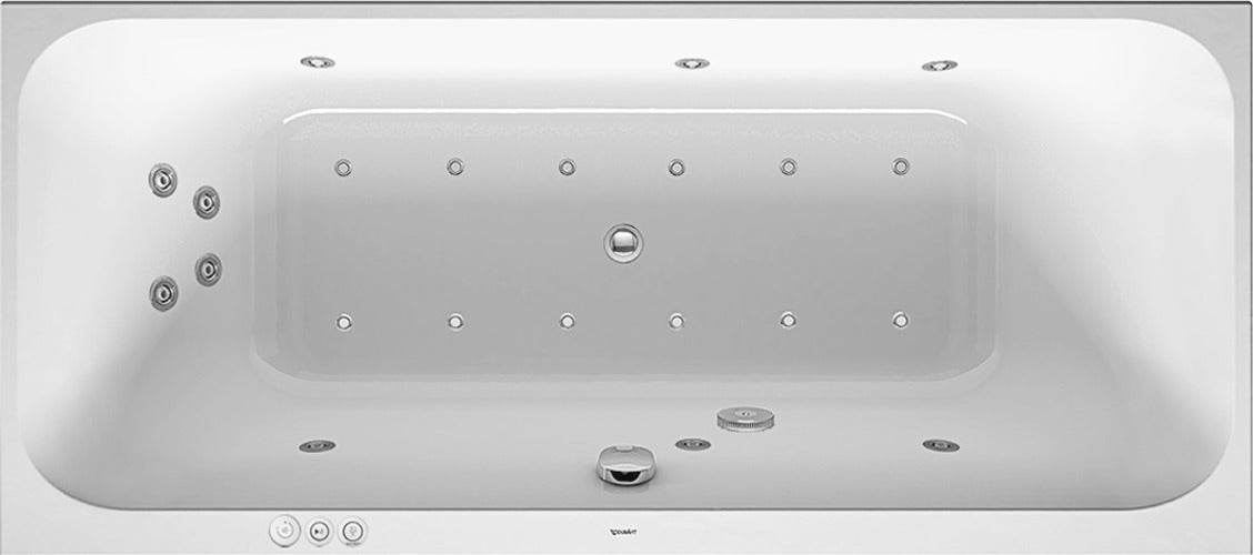 Baignoire balnéo Duravit Happy D.2, version à encastrer, double dos inclinés, bâti-support, garniture de vidage et de trop-plein, Combi-Système P,