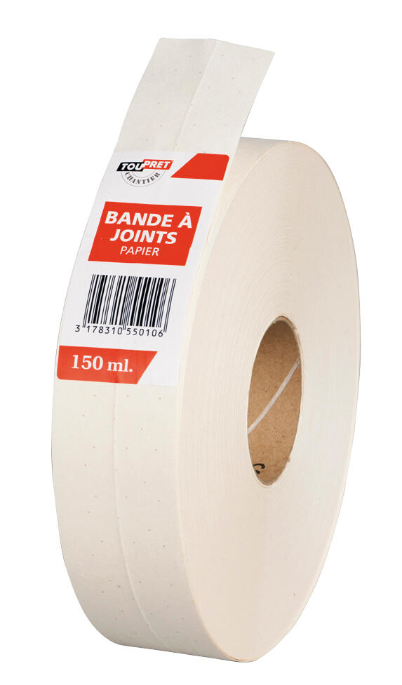 Intérieur. Pour jointer les plaques de plâtre à épiderme cartonnée et bords amincis. Forte résistance à la flexion. Micro-perforée pour une meilleure adhérence de la bande. Absorption comparable aux parements de plaque. Bande à joint papier poncée et perforée avec un pré-pliage central. SUPPORTS : Sur plaque de plâtre avec ou sans isolants à bords amincis et à faces cartonnées. Recouvrable par tous types d’enduits, peintures et revêtements muraux. DIMENSIONS : Bande de 150 m de longueur par 5 cm de large. RECOMMANDATIONS ET PRÉCAUTIONS D’EMPLOI : Ne pas appliquer à une température inférieure à +5°C et supérieure à +35°C et un taux d’hygrométrie supérieur à 80%. Ne pas appliquer sur des revêtements collés. PRÉPARATION DES FONDS : Les supports seront préparés conformément aux DTU. Les fonds doivent être durs, cohésifs, propres, sains et secs. Produit réservé à un usage non professionnel.