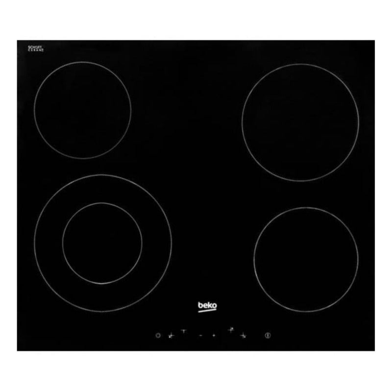 Caractéristiques de la Plaque de cuisson vitrocéramique avec 4 feux + double zone, 6800 W fonction d'arrêt automatique 58x81cm, Noir, Beko (HIC64401) :