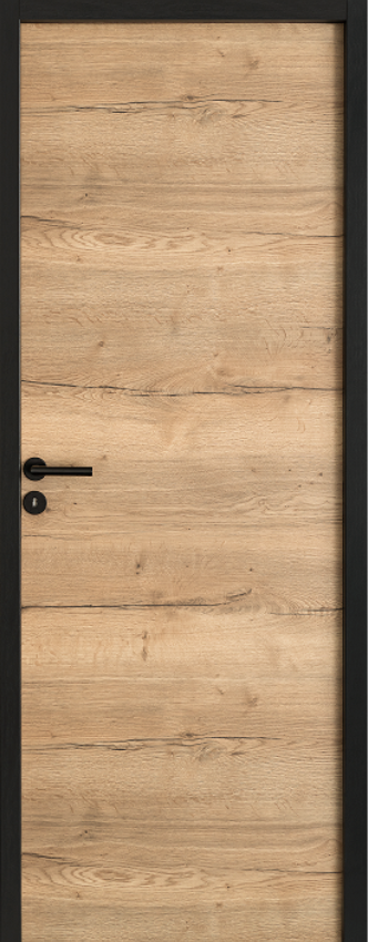 Bloc-Porte CHARI DECO à rive droite en chêne veiné 204x83 Huisserie de 90mm en MDF enrobée d'un décor noir - âme en aggloméré tubulaire - serrure magnétique droite - GIMM