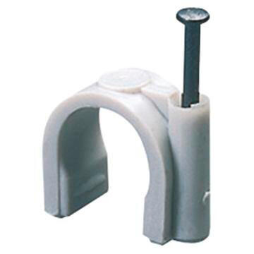 ATTACHE EN POLYMÈRE ANTICHOC AVEC CLOU EN ACIER TEMPRÉ - GRIS RAL 7035 Système complet comprenant des presse-étoupes, des accessoires de fixation en plastique et en métal, des accessoires de liaison pour conduit rigide et gaine, des colliers de câblage et d'installation pour extérieur et des borniers de connexion.