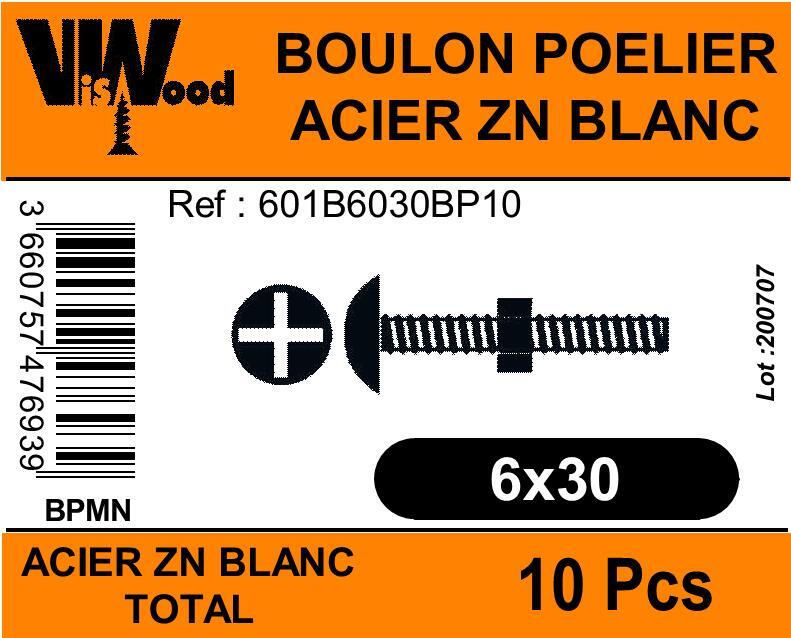 Boulon Poelier Acier Zingué Blanc - NFE 25129. Permet d'avoir une épaisseur réduite tout en élargissant la surface d'appui. Utilisé pour les assemblages métalliques. Empreinte Phillips.
