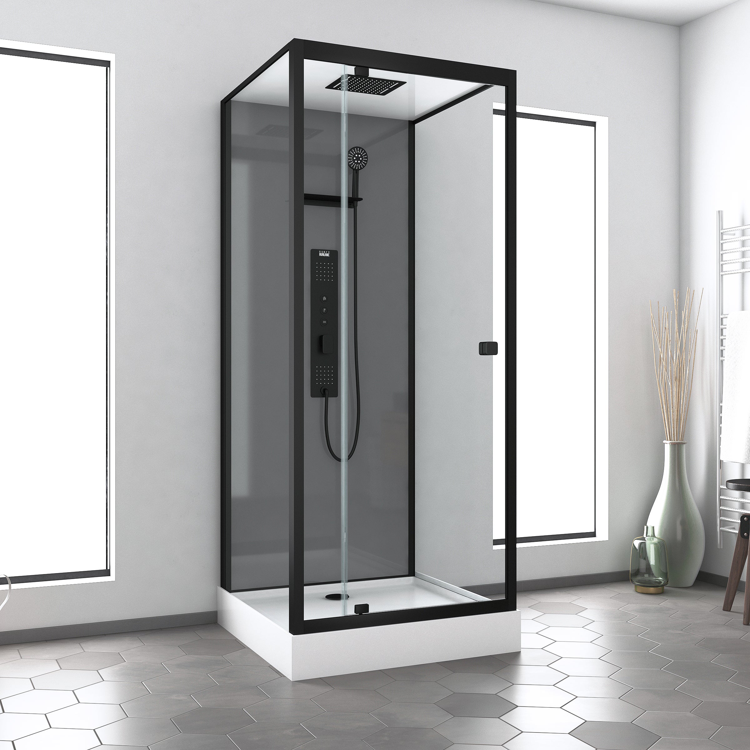 Cabine de douche Hydromassante 90x90x215 cm - Fonds Gris et Profilés Noir Mat - GREY STYLE