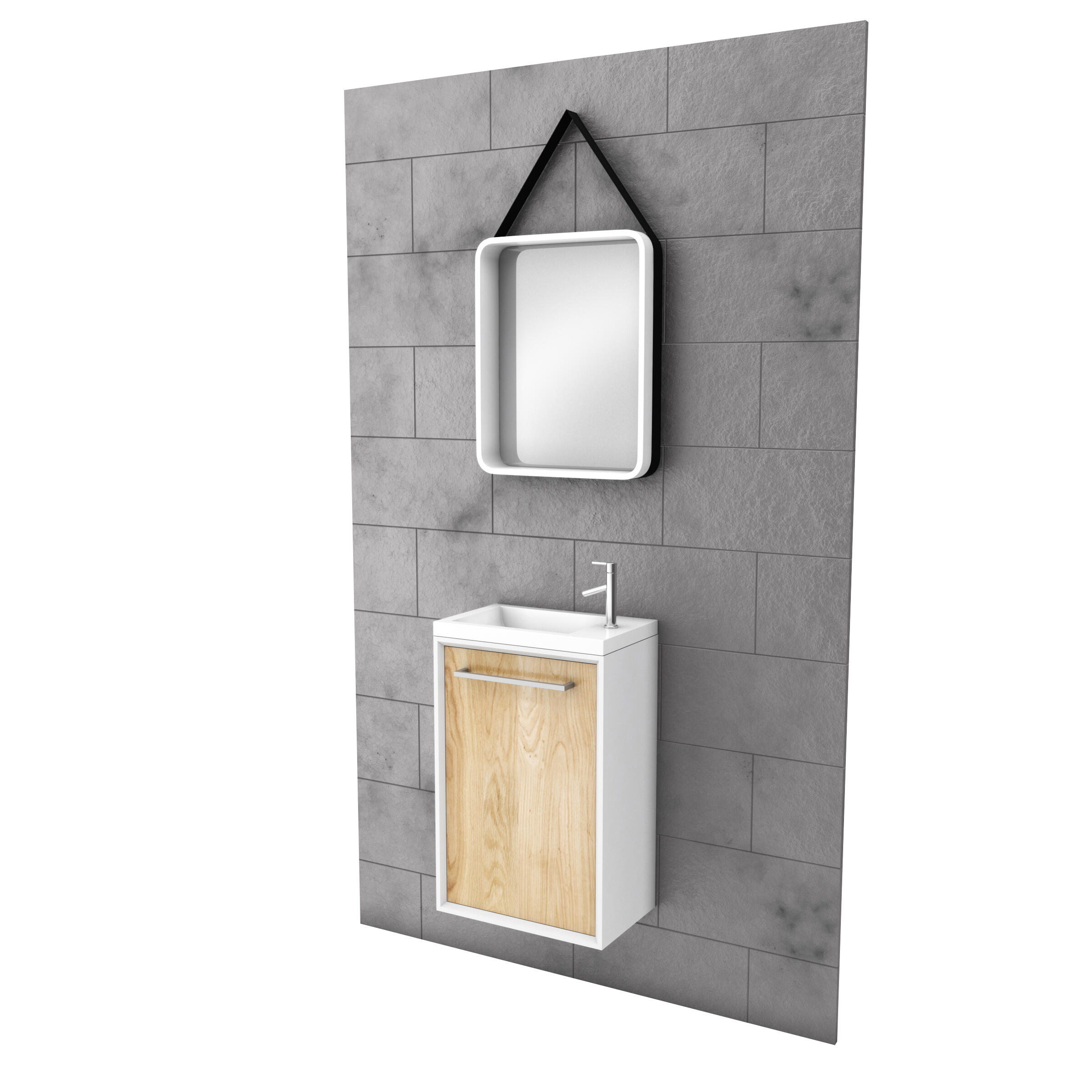Idéal pour les petits espaces, peu encombrant et pratique, le lave-mains Tiny 2 s’adapte à vos envies déco. La gamme Tiny 2 vous offre un vaste choix de combinaisons, avec 4 coloris de caissons, 4 vasques en verre ou résine, 2 miroirs. Caisson en médium 16mm laqué blanc mat et porte finition décor chêne naturel. Porte à fermeture progressive. Bords biseautés. Poignée en aluminium anodisé. A monter. Hauteur 60 cm. Largeur 40 cm. Profondeur 25 cm Durée présence pièces détachée : 5 ans