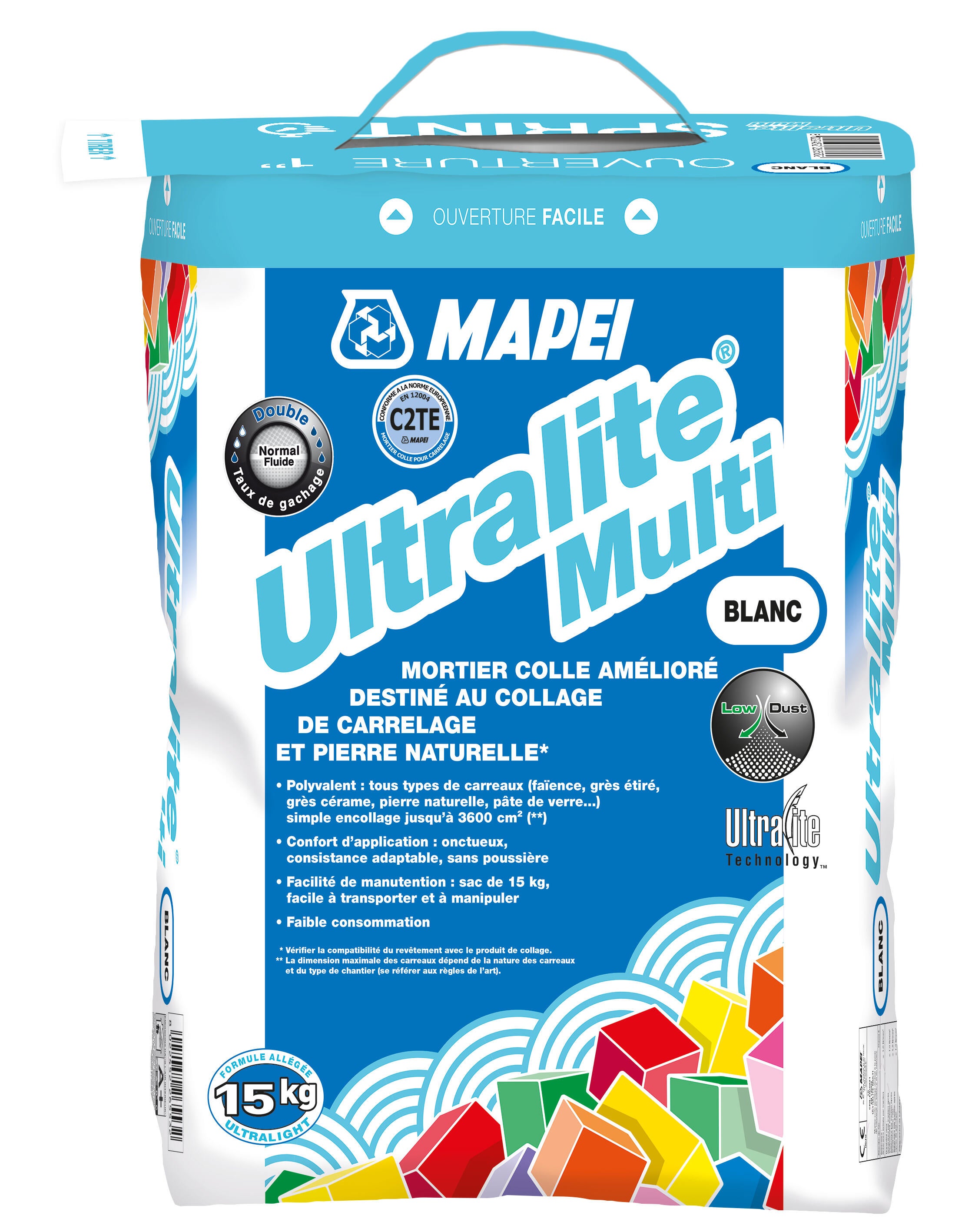 Colle carrelage en poudre blanc C2ET pour sol intérieur & extérieur et mur intérieur 15 kg - Ultralite multi MAPEI