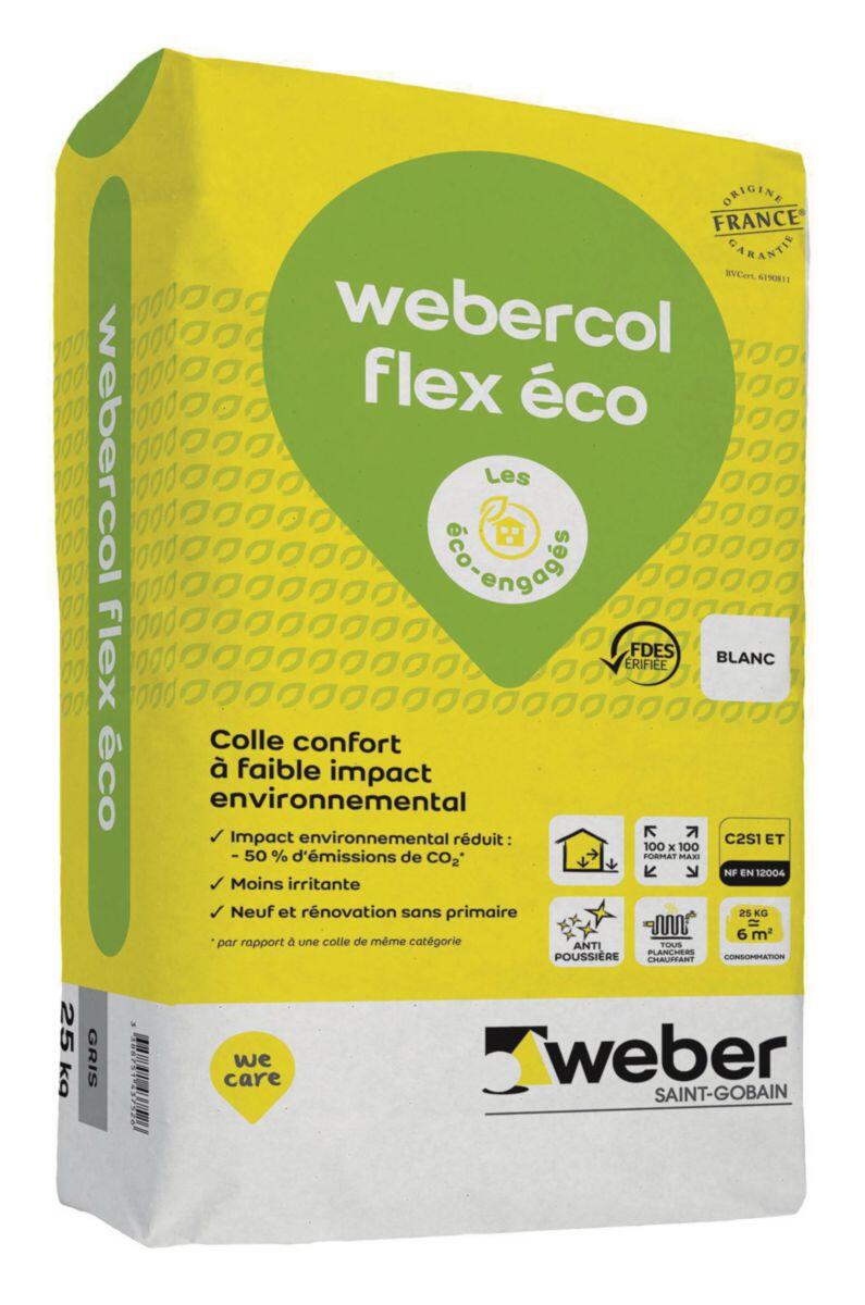Colle carrelage en poudre blanc C2S1ET pour sol intérieur & extérieur et mur intérieur 25 kg - Webercol flex eco WEBER