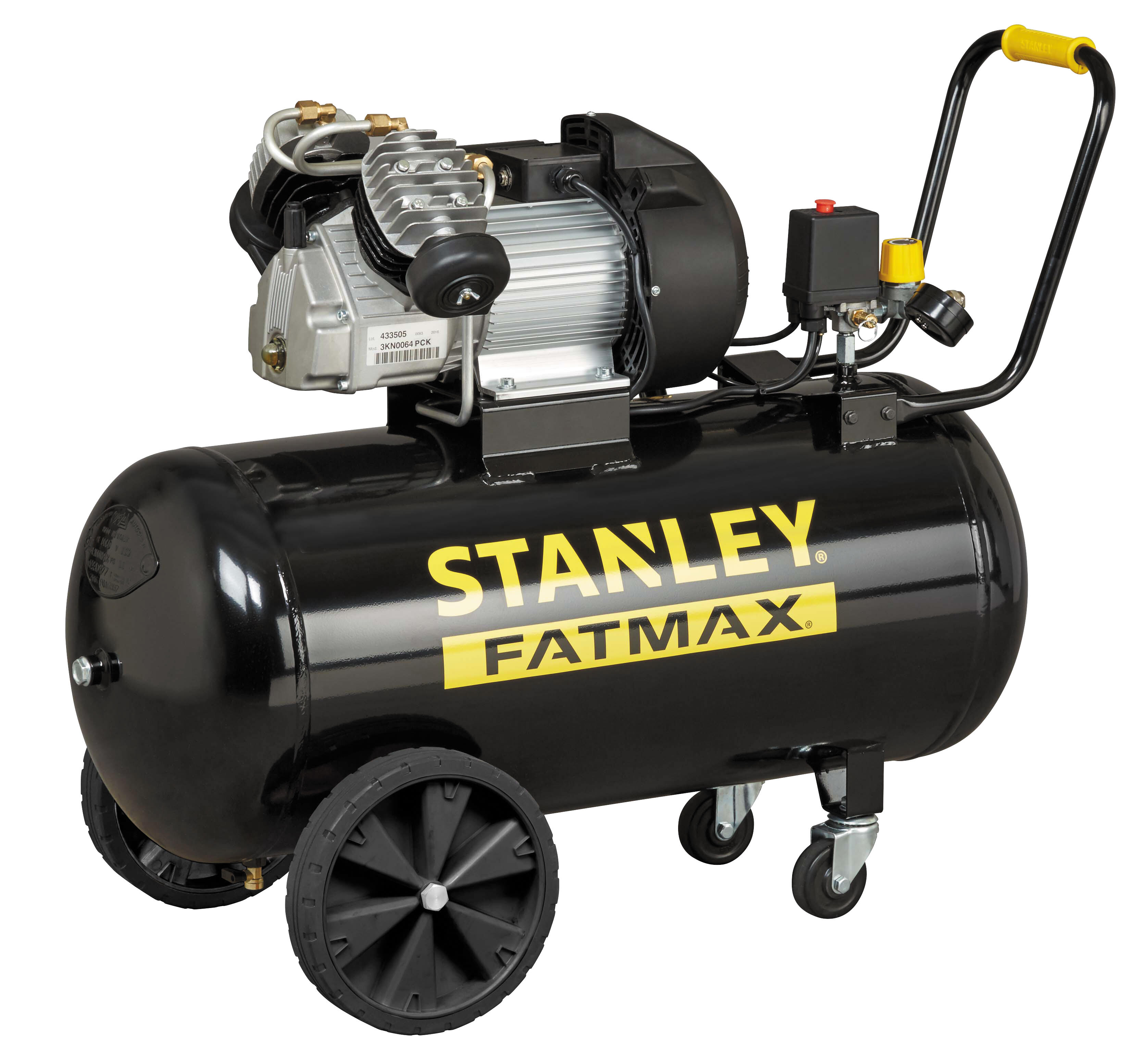 Ce compresseur est compact et performant grâce à sa tête coaxiale bicylindre Alu/Fonte en V. Il permet tous les travaux d'entretien, de réparation et de peinture. Ce compresseur Stanley Fatmax occupe peu de place, il peut être facilement rangé dans un garage ou un atelier. Son poids inférieur à 60 kg et ses 4 roues offrent une grande maniabilité. > Compresseur compact et performant > Bicylindre Alu/Fonte en V > Cuve 100L délivrant une grande autonomie > Manomètres inclinés et brancard complet > 2 grandes roues et 2 roues pivotantes 100L. Pression maxi : 10bar. Puissance moteur : 3HP. Débit d'air aspiré : 356l/min. Débit d'air restitué 7bar/3bar : 185L/min / 230L/min. Vitesse de rotation : 2850 tr/min. Entrainement coaxial. Puissance électrique : 2.2kW Durée présence pièces détachée : 5 ans après la date d’arrêt de fabrication du produit