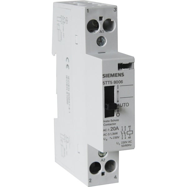 Contacteur jour/nuit Siemens 20A 2NO, 3 positions (AUTO, I, 0), automatique pour consommation tarif réduit