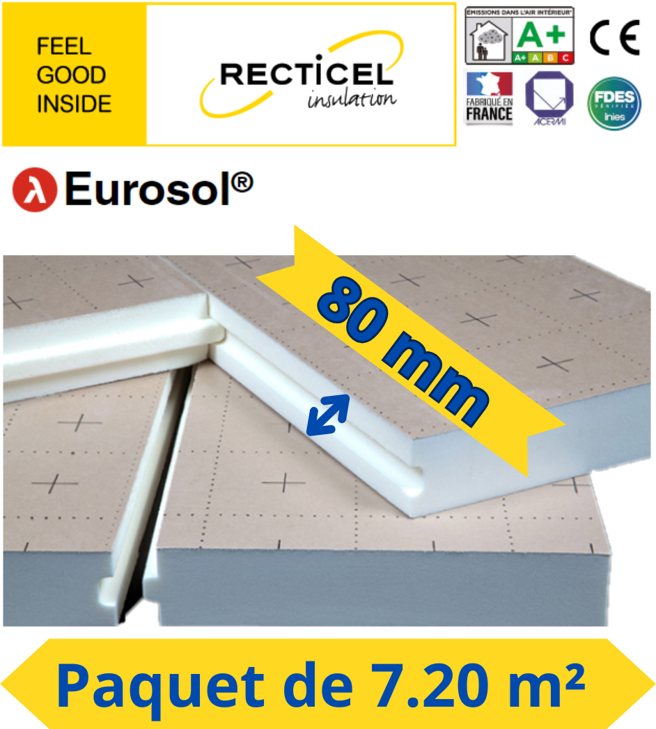 Dalle isolant Polyuréthane 80 mm EUROSOL R3,70 Colis de 7,20 m²