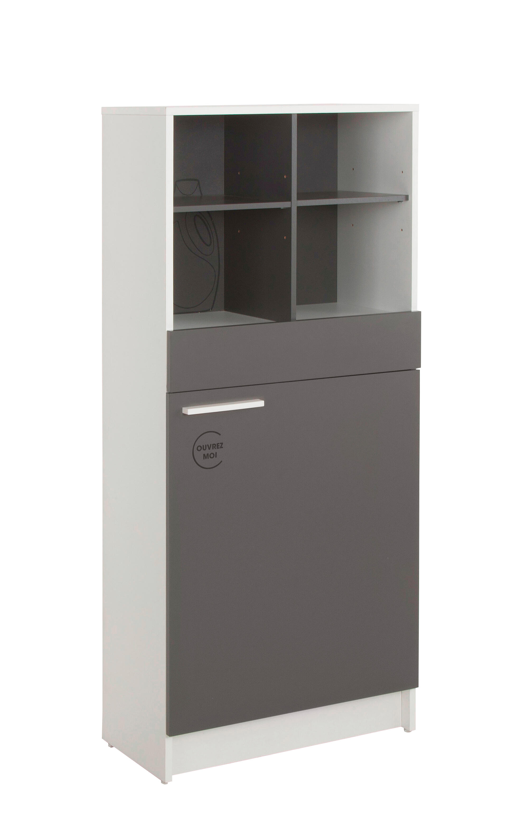 4 niches, 1 tiroir + 1 porte basculante. Larg : 60 cm Prof : 31,5 cm Haut : 137 cm.
