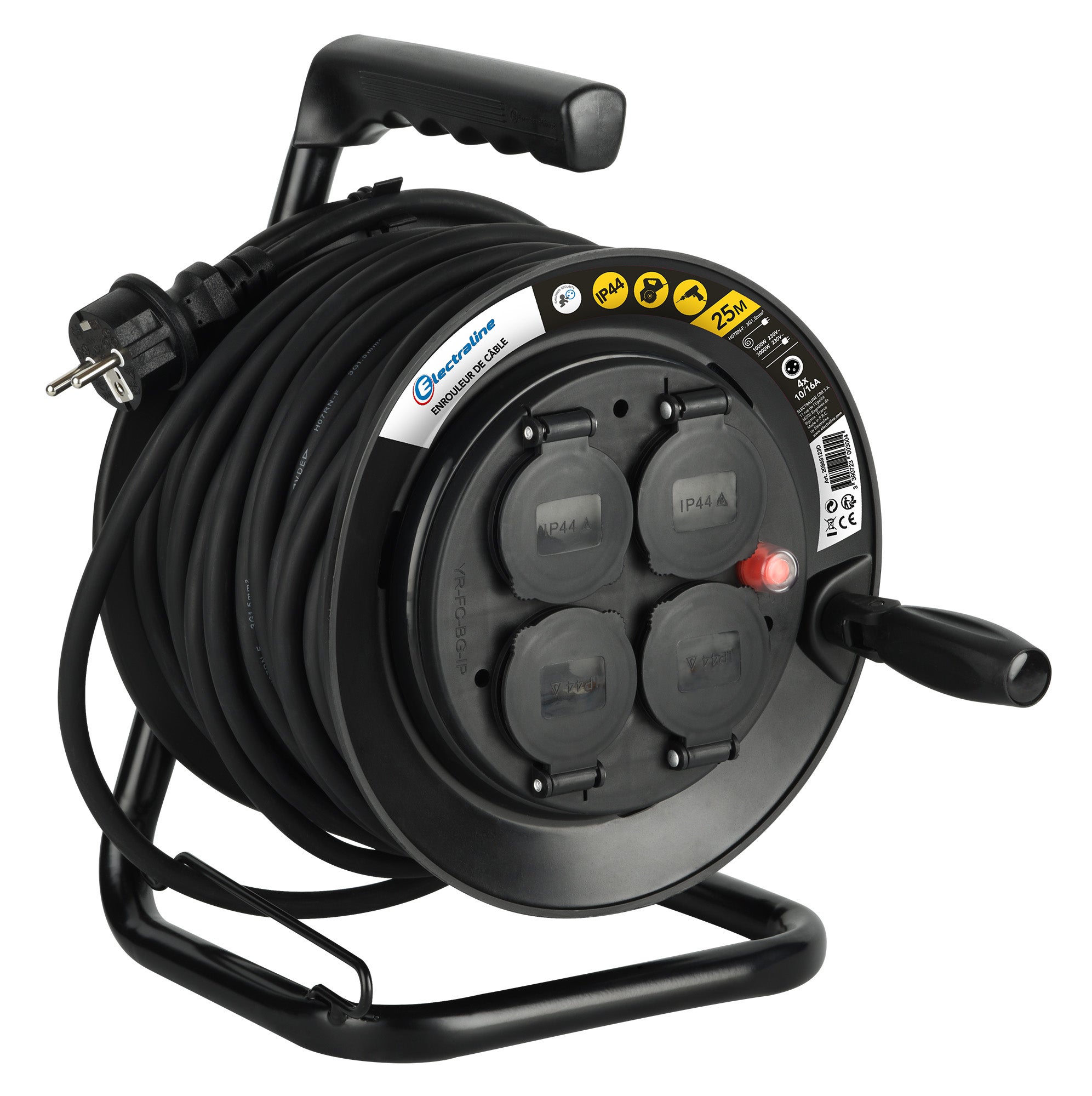 Rallonge Prolongateur électrique IP44 Profesionnelle 25 m avec enrouleur Noir - Section 3G1,5 mm²