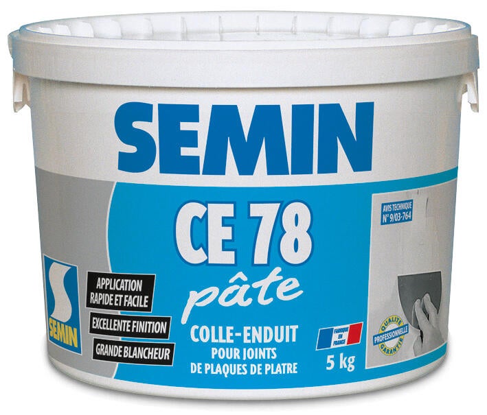 CE 78 Pâte est un enduit prêt à l'emploi spécialement formulé pour le traitement des joints de plaques de plâtre à bords amincis en association avec une bande à joint.