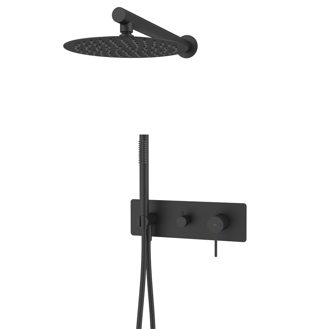 Ensemble de douche à encastrer mitigeur ESSEBAGNO noir mat rond. Pomme de douche murale 25 cm anticalcaire 2 voies