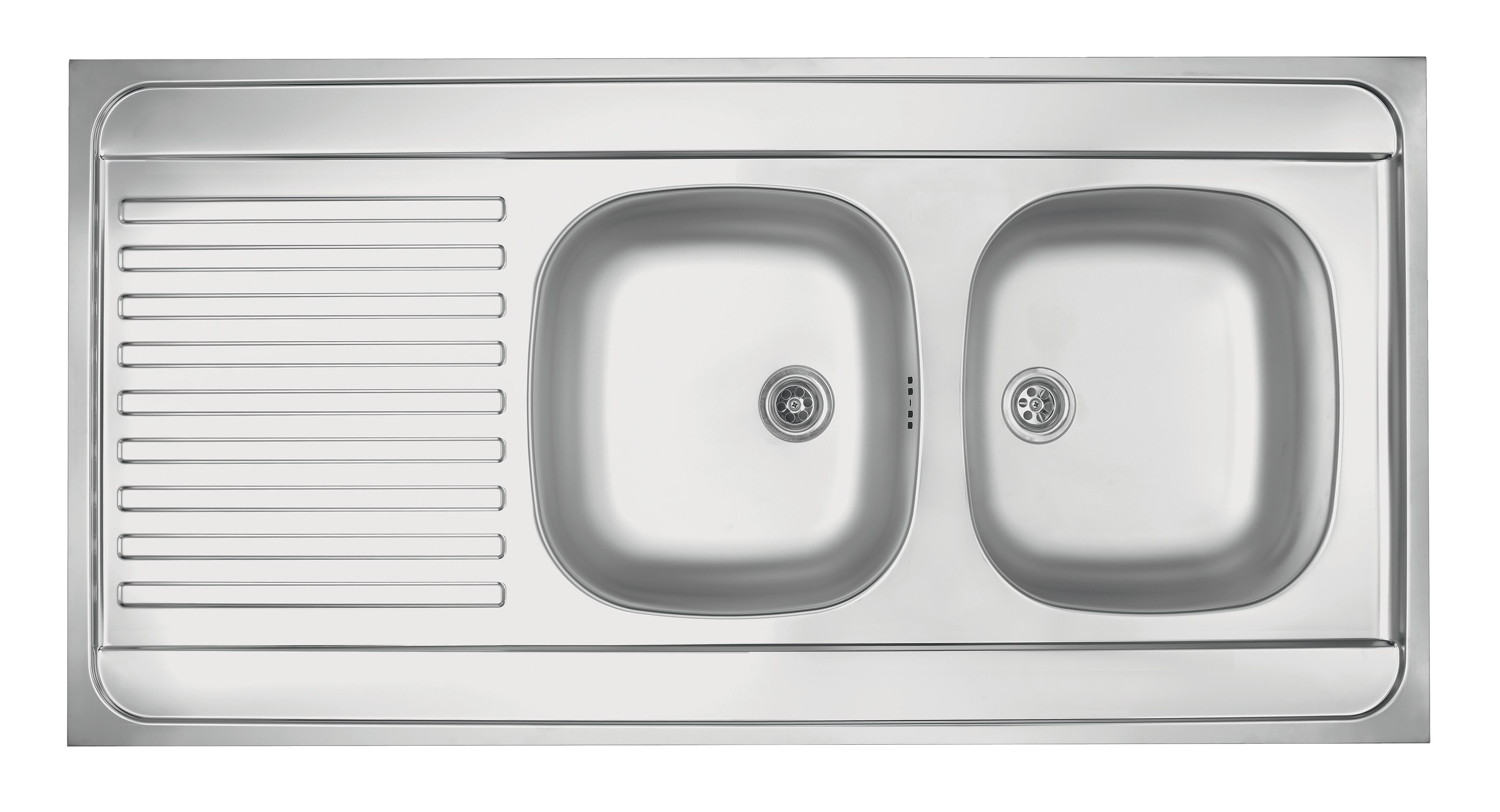 Evier à poser en Inox , MAN 711- 1200, 1200x600, NF, avec cadre bois. Nu sans vidage. Deux bacs avec égouttoir , réversible en INOX 18/10. Plaque d'isolation phonique, 4 angles soudés avec cadre bois sur les 4 côtés. Pour meuble sous évier de 120 cm. Bonde 70. Dimensions : L.120 x l.60 cm. Dimensions de la cuve principale : L.34 x l.33 x P.16 cm. Poids net : 6 kg. Durée de garantie : 15 ans.