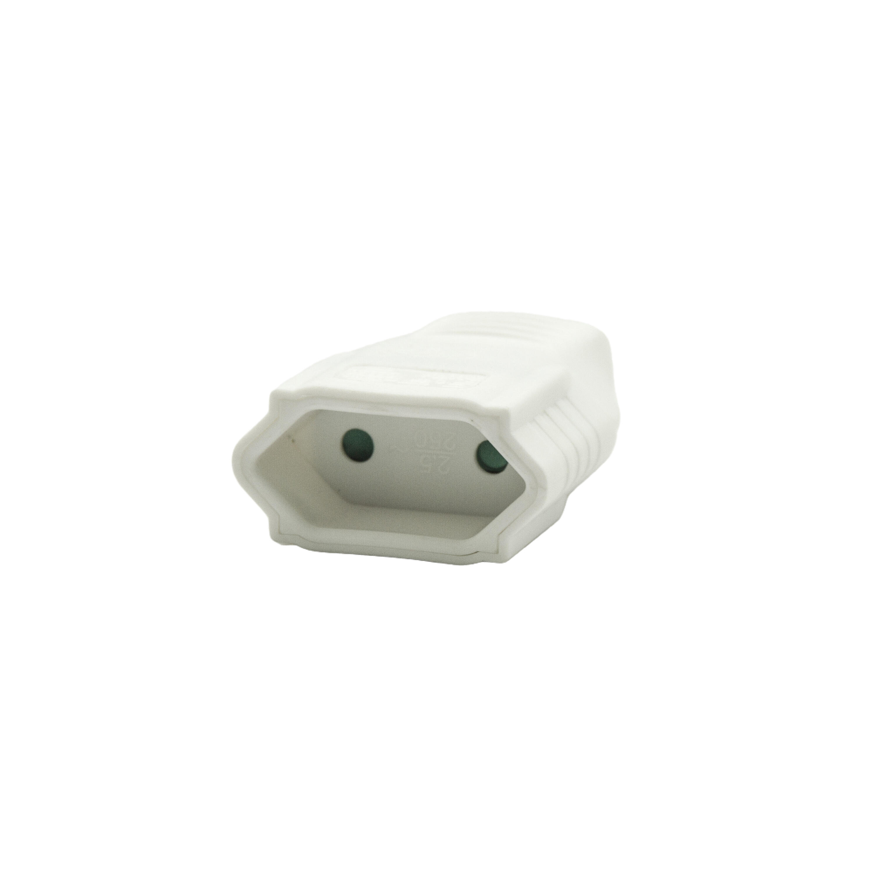 Fiche femelle 2P 6A plastique blanc IP20. NF. Cette prise femelle 2 pôles 6A sans terre est idéale pour brancher facilement les câbles électriques de vos rallonges. Durée présence pièces détachée : Ce produit ne dispose pas de pièces détachées