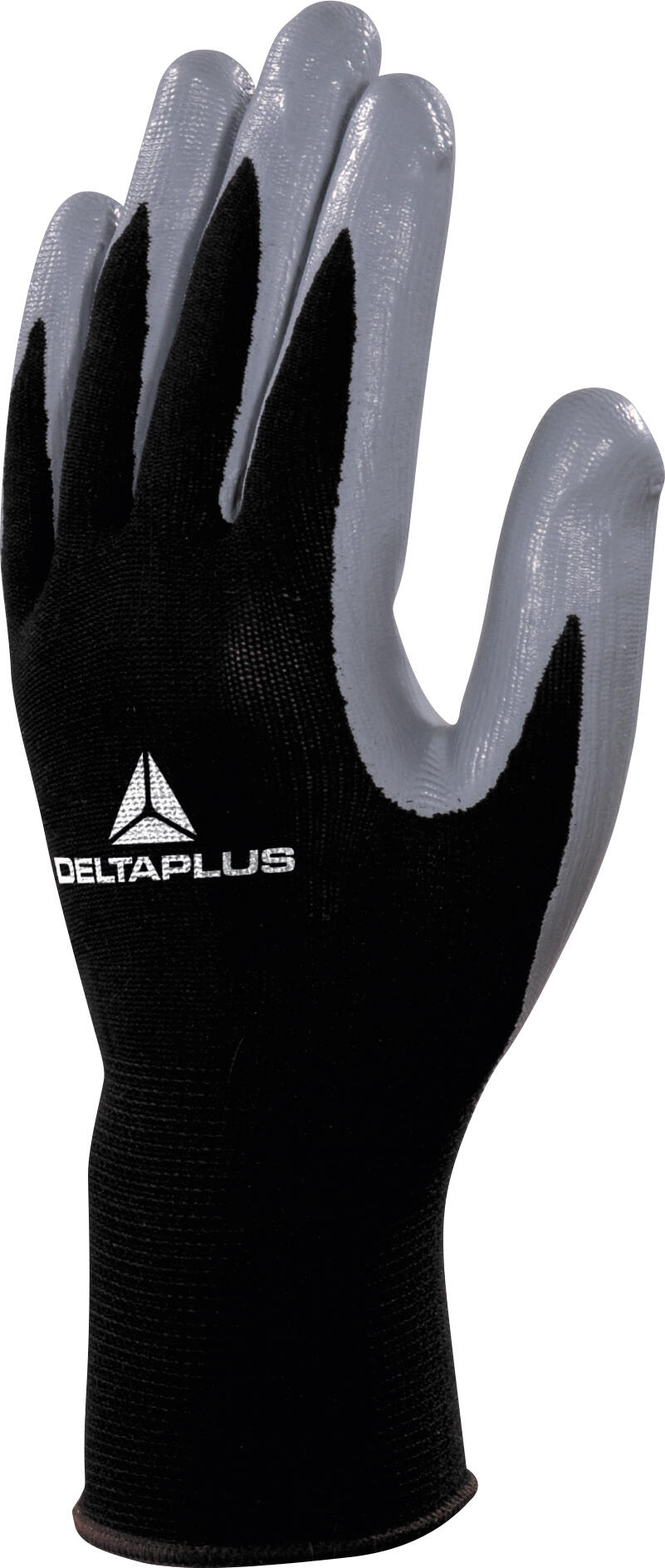 100% polyester. Enduction nitrile sur paume et bout des doigts. Jauge 13. Support: 100% polyester. Enduction : 100% nitrile. EN388 4-1-2-1-X