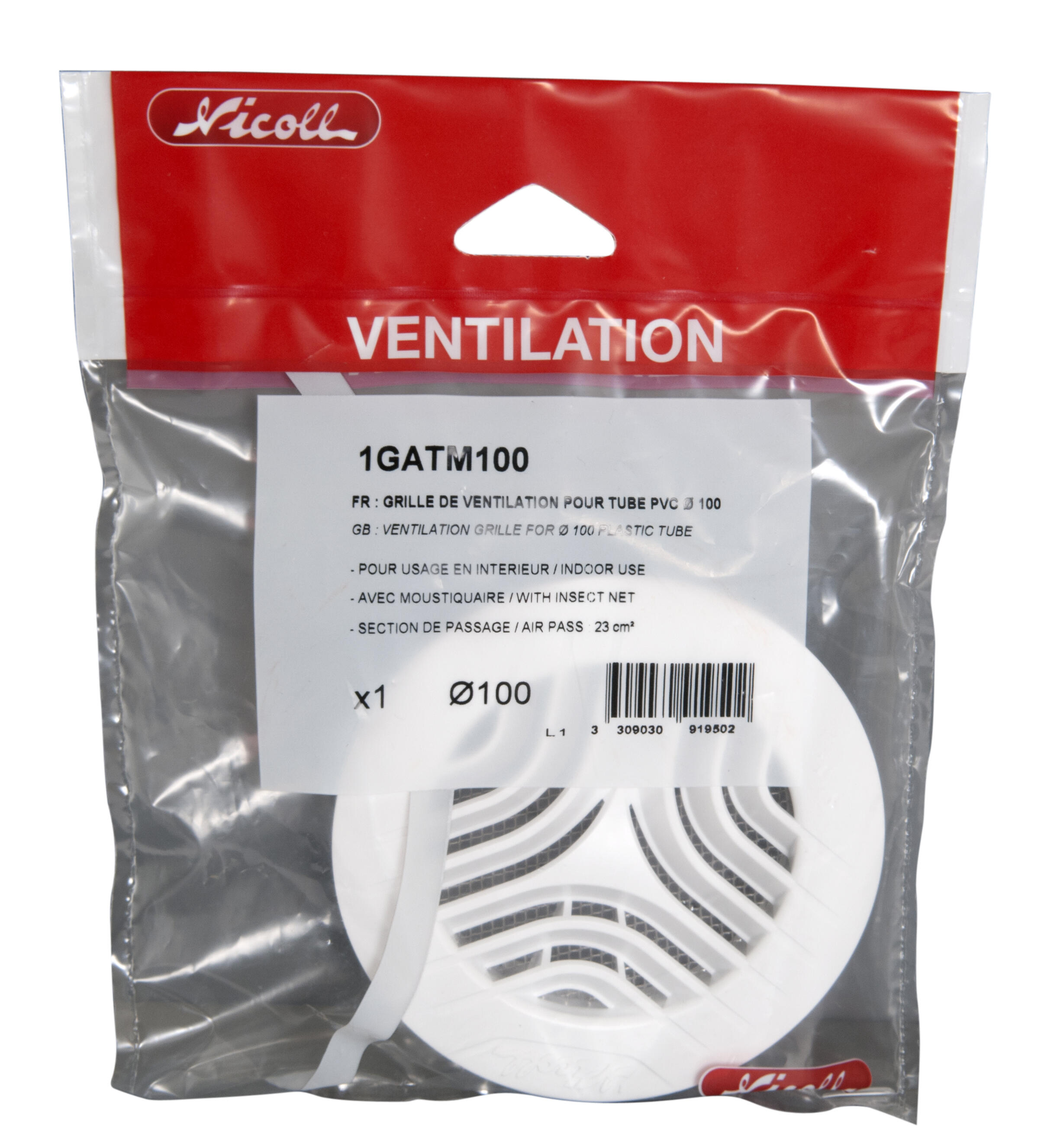 Grille de ventilation intérieure Diam.100 mm - NICOLL