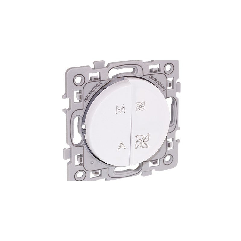 Eur'Ohm propose l'interrupteur VMC de 2 positions de la gamme Square, au design sobre et discret qui permet son intégration facilement dans n'importe quelle décoration d'intérieur.