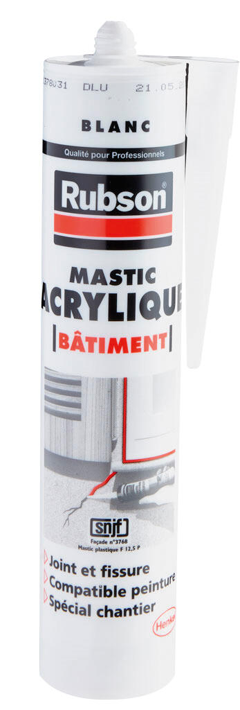 Lot de 3 Mastics acrylique bâtiment RUBSON Blanc 300 ml