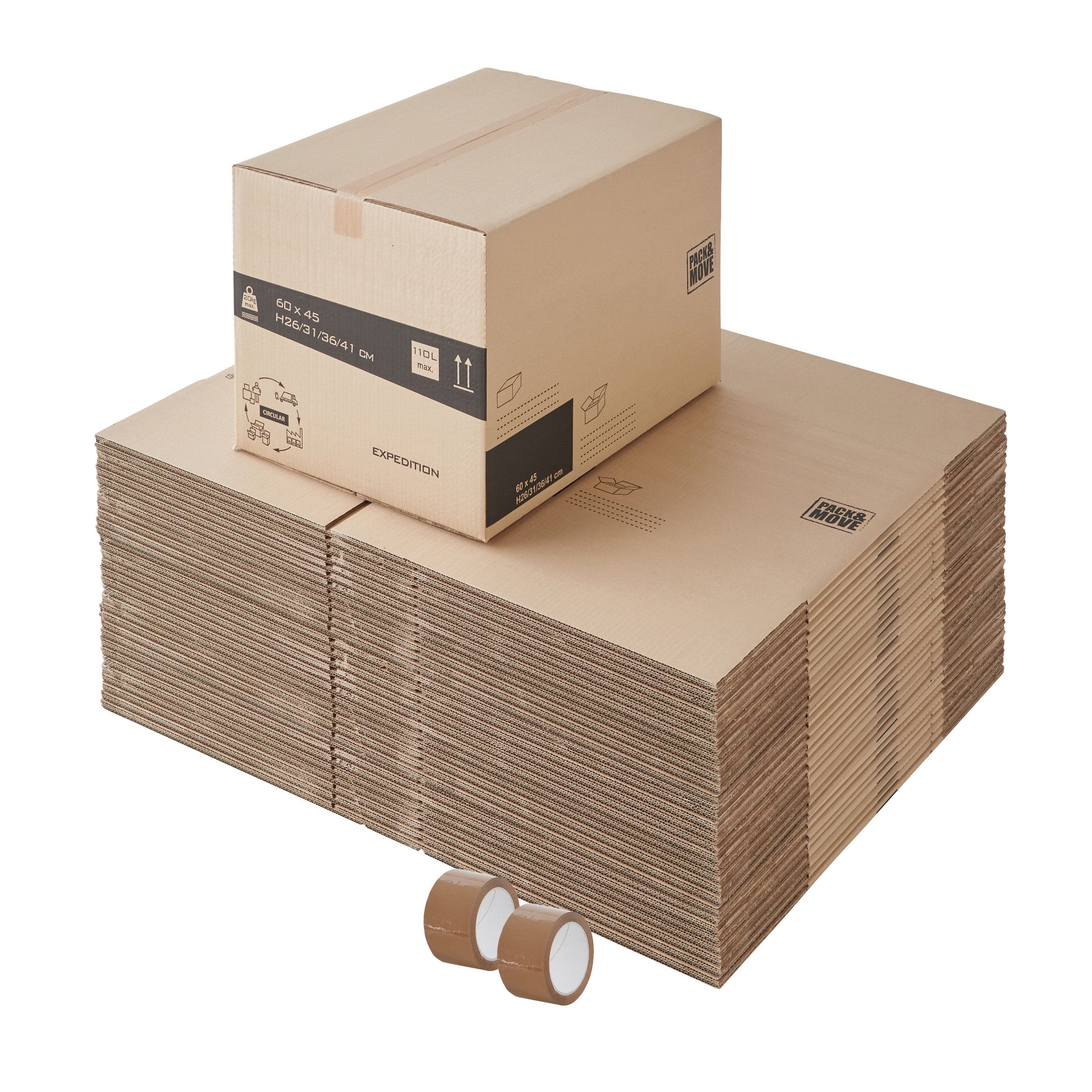 Lot de 30 boites cartons à hauteur variable - 110L, charge max 20kg - Déménagement ou expédition - made in France + 2 adhésifs offerts