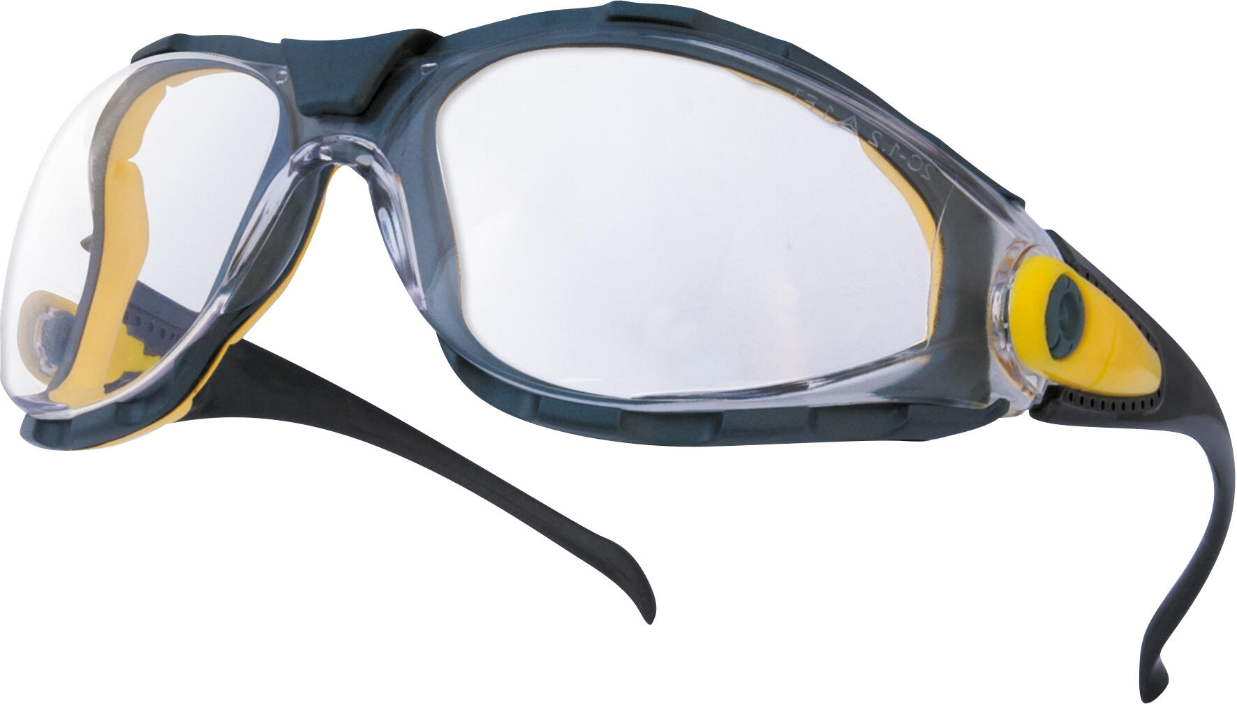 Lunettes polycarbonate monobloc. Nez polycarbonate intégré. Branches nylon inclinables. Protections latérales. Monture : nylon Oculaires : polycarbonate Poids : 36 g
