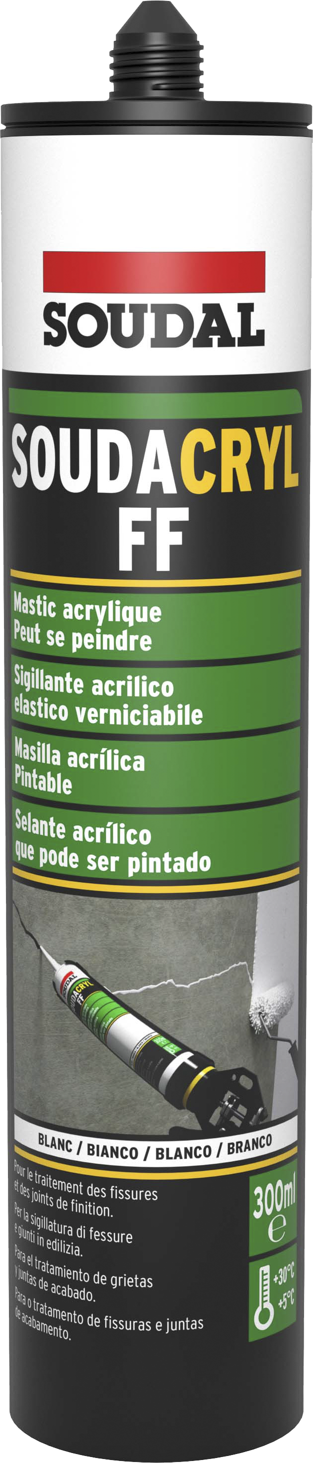 Mastic de rebouchage Soudacryl FF acrylique blanc 300 ml - SOUDAL