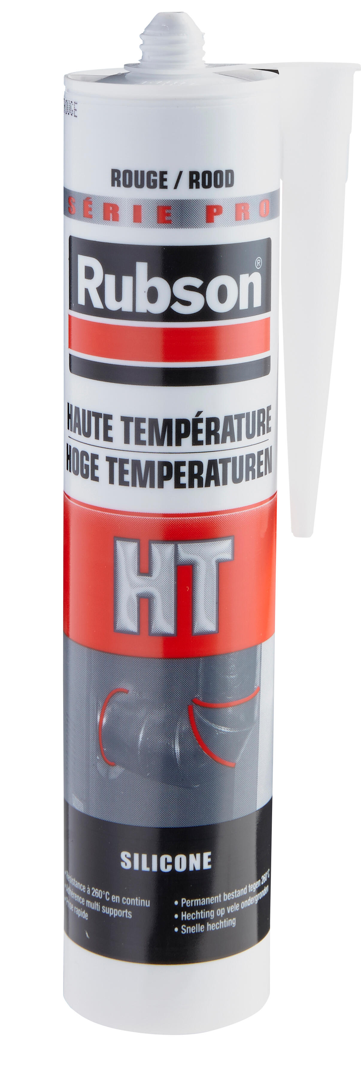Mastic de liaison et de collage résistant aux hautes températures (jusqu'à 260°C en continu, 315°C en pointe). Coloris : rouge. Mention légales : -