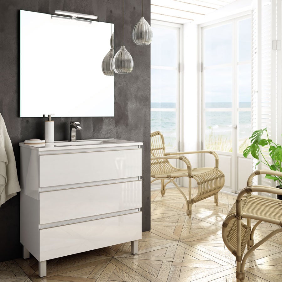 Le meuble de salle de bain 3 tiroirs PALMA - Blanc - 60cm est composé d'un meuble sur pied, d'un plan vasque et d'un miroir. Il existe en 5 coloris et 6 dimensions ce qui lui permet de s'adapter parfaitement à votre salle de bain en fonction de vos envies.