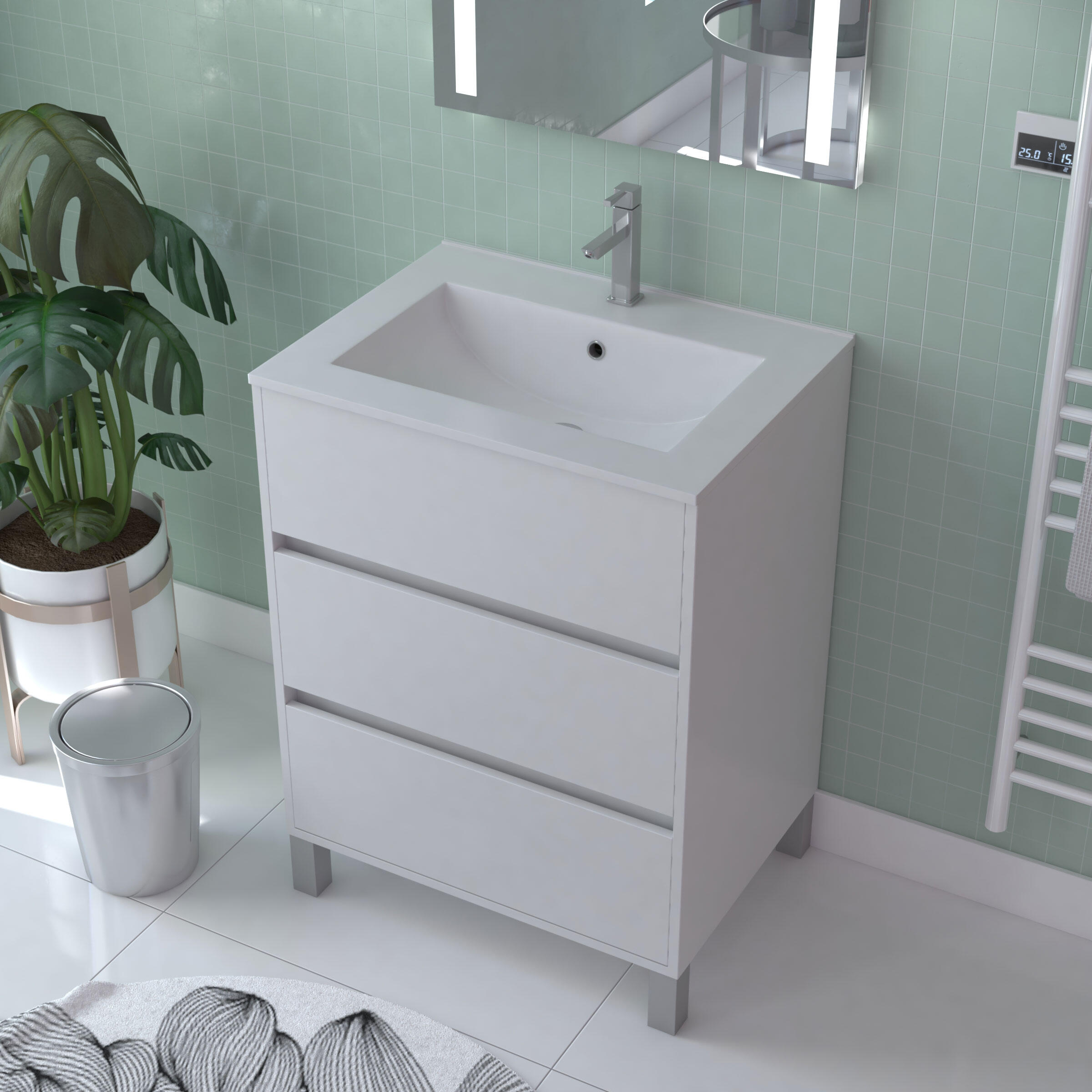 Meuble sous vasque sur pieds 3 tiroirs blanc laqué l.60 x P.45,50 x H.81 cm - ATOS