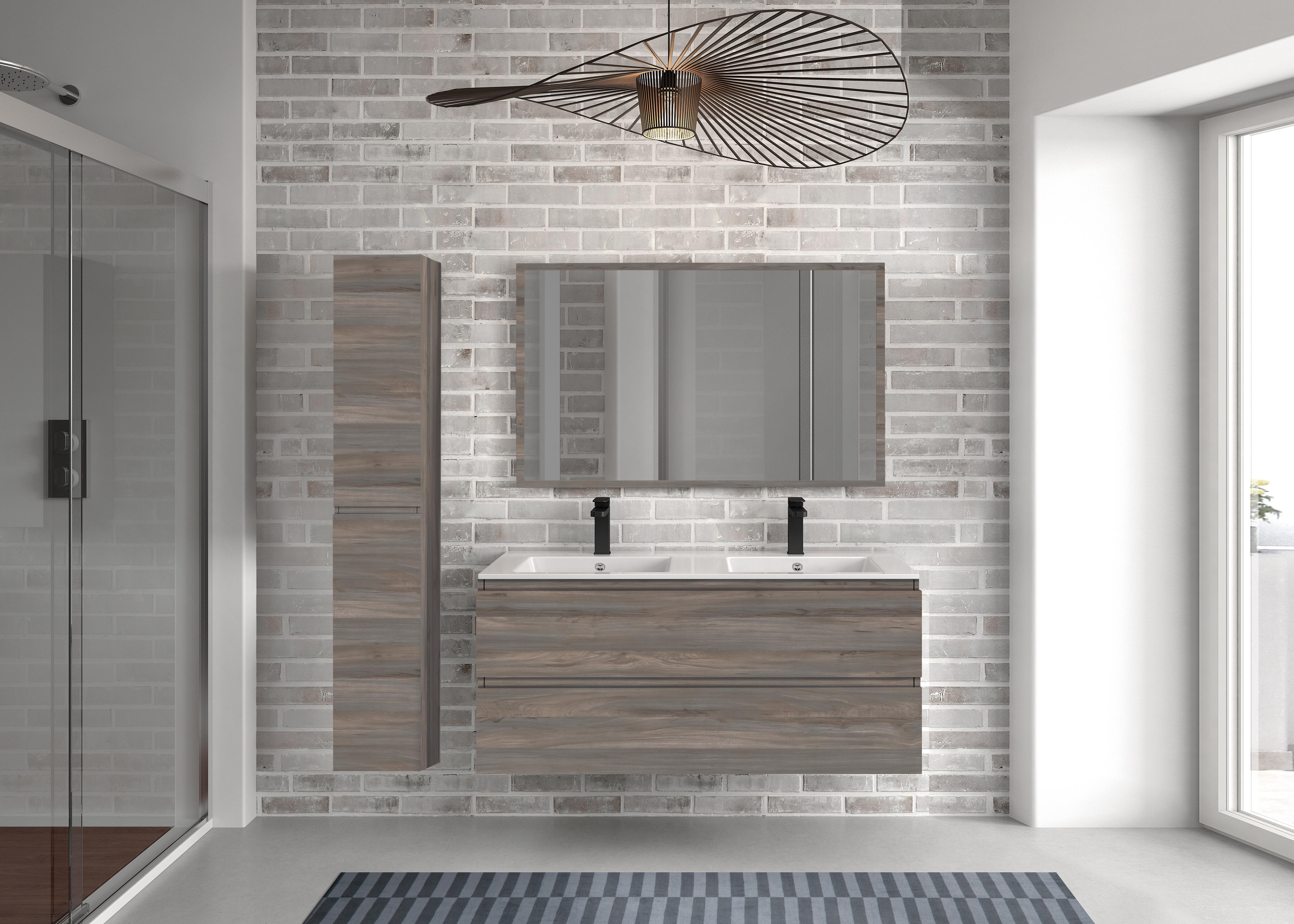 Meuble sous vasque suspendu 2 tiroirs décor chêne grisé l.120 x P.45 x H.50 cm - ATLANTIS