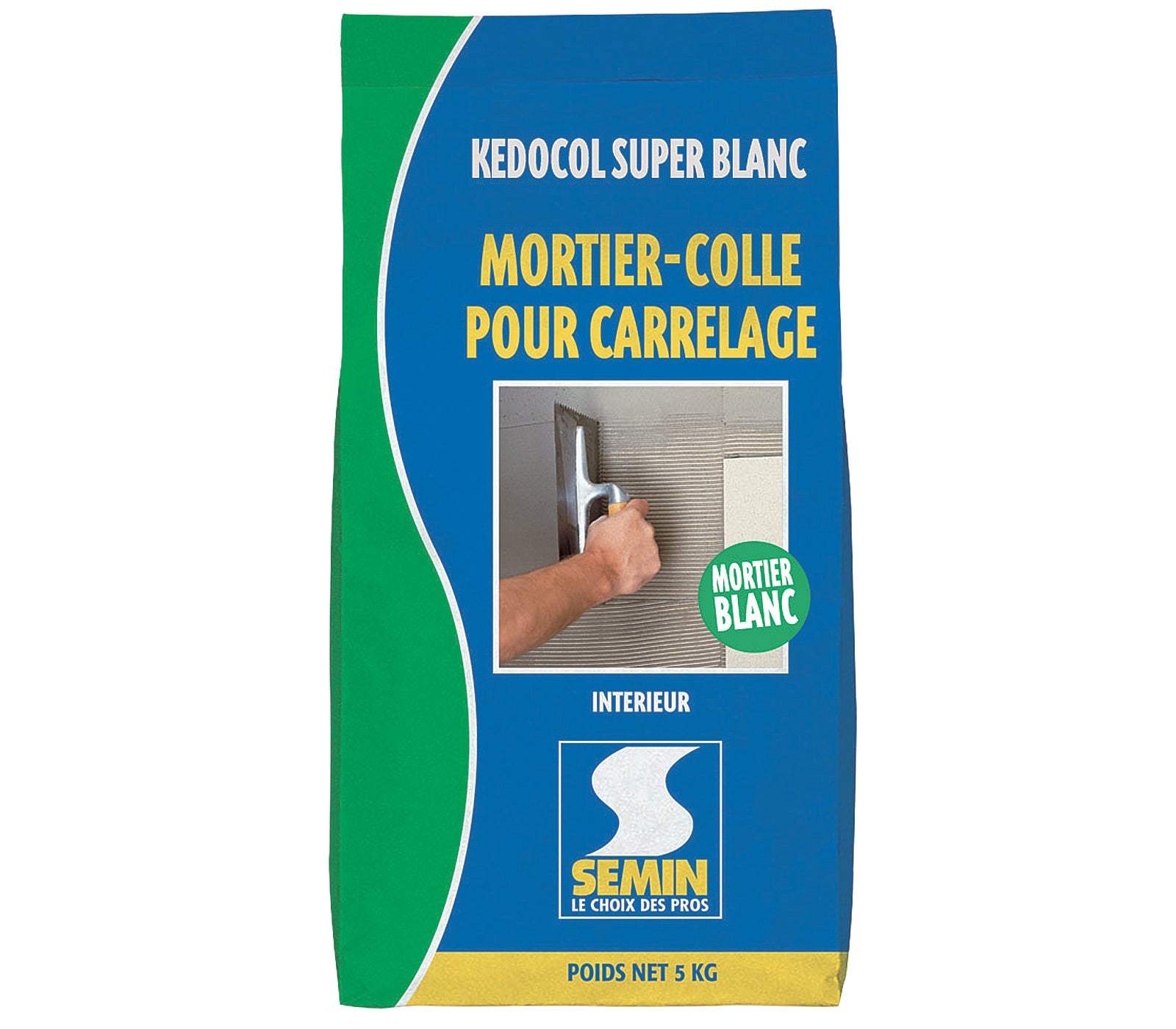 Mortier-colle traditionnel d’excellente qualité de classe 1, Kedocol Super Blanc est indiqué pour la pose de carrelages, céramiques, terre cuite, pâte de verre de formats traditionnels sur murs et sols en intérieur.