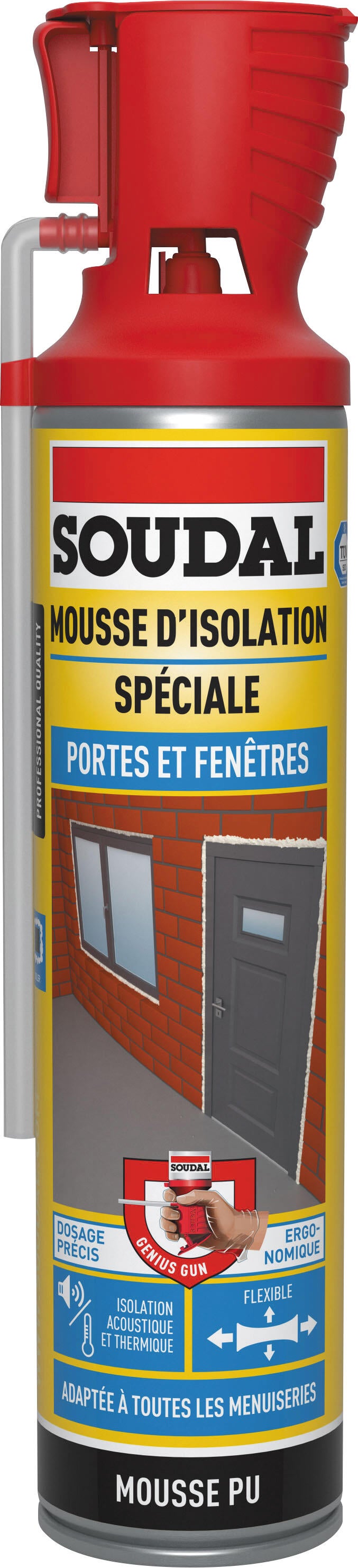 Mousse expansive polyuréthane LMDI menuiserie pistolet intégré 500 ml - SOUDAL