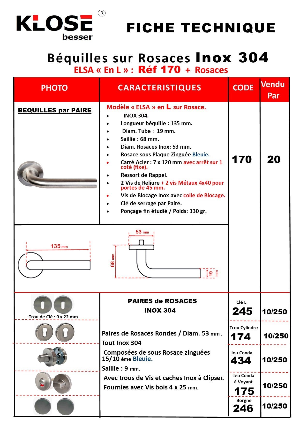 Paire de poignées KLOSE besser sur rosaces "Elsa en L" - Inox 304