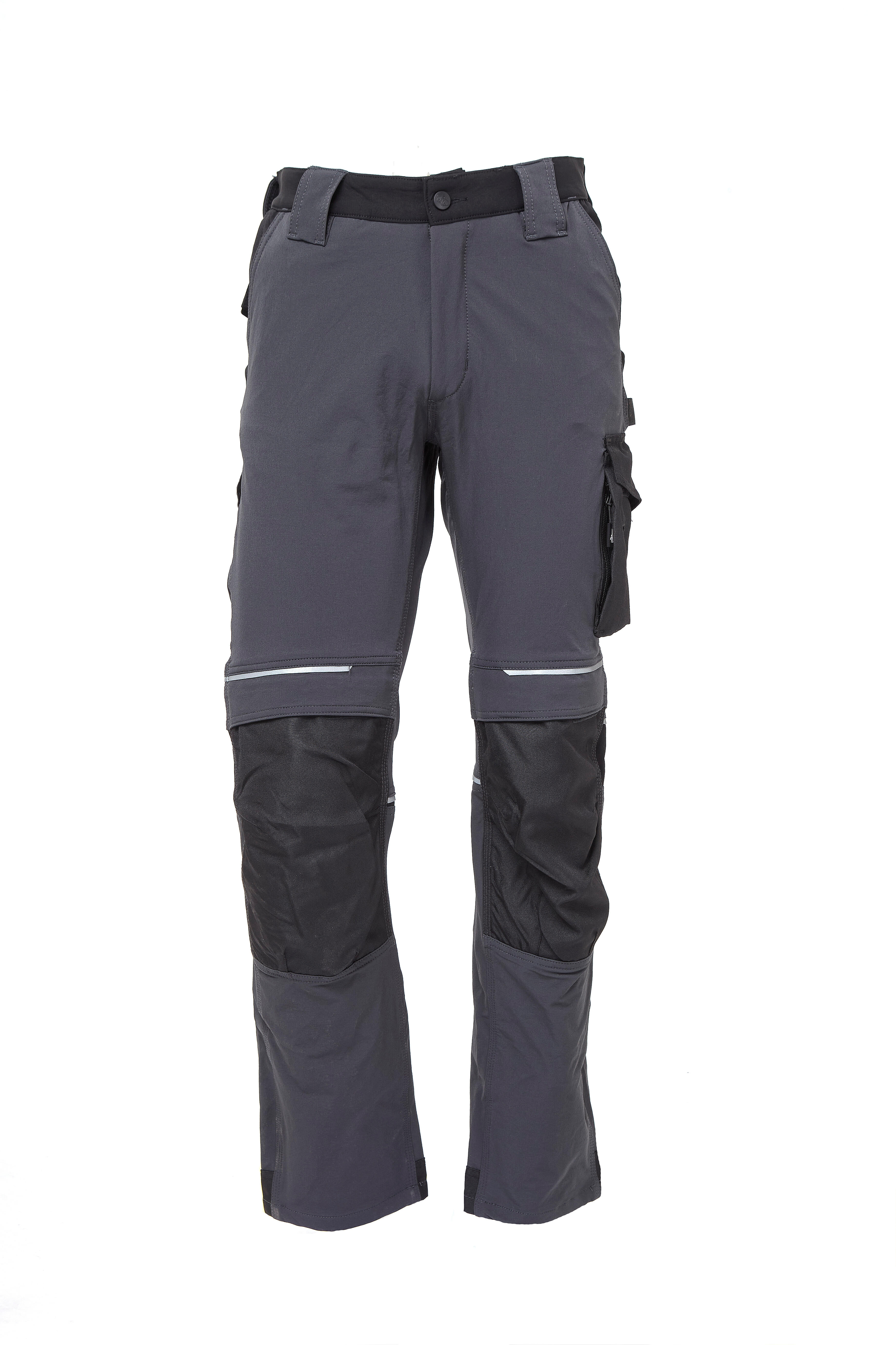 Pantalon en tissu U-4 (U-Power 4 way stretch), super confortable, résistant, doux au toucher, déperlant, respirant et au séchage rapide. Dotée de deux amples poches à l’arrière, élastiquée à la taille avec un sytème innovant de serrage invisible. Bavette à l’arrière pour une meilleure protection lombaire et ruban rouge/reflex sur les passants postérieurs. Fermeture centrale avec zip YKK et bouton en caoutchouc anti-rayures. Poche latérale porte-outils, poche latérale multifonction avec porte badge rétractable, deux poches à l’arrière dont une avec patte et une avec fermeture velcro. Deux poches porte-genouillère à ouverture facile par le haut, bas de pantalon entièrement renforcé en polyoxford 600D. Poches zippées cachées sous la grande poche latérale et sous la poche avant droite. Triple coutures, Slim Fit. 90% NYLON • 10% SPANDEX • 260 gr/m²