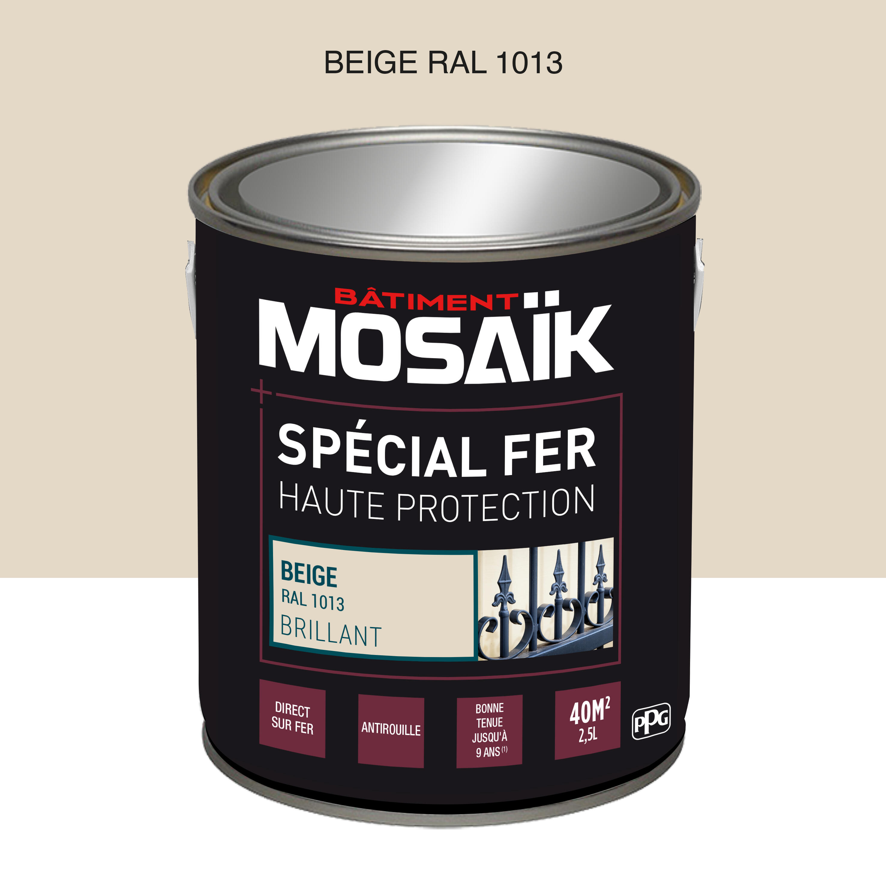 Peinture fer glycéro anti-rouille brillant beige RAL1013 2,5 L - MOSAÏK