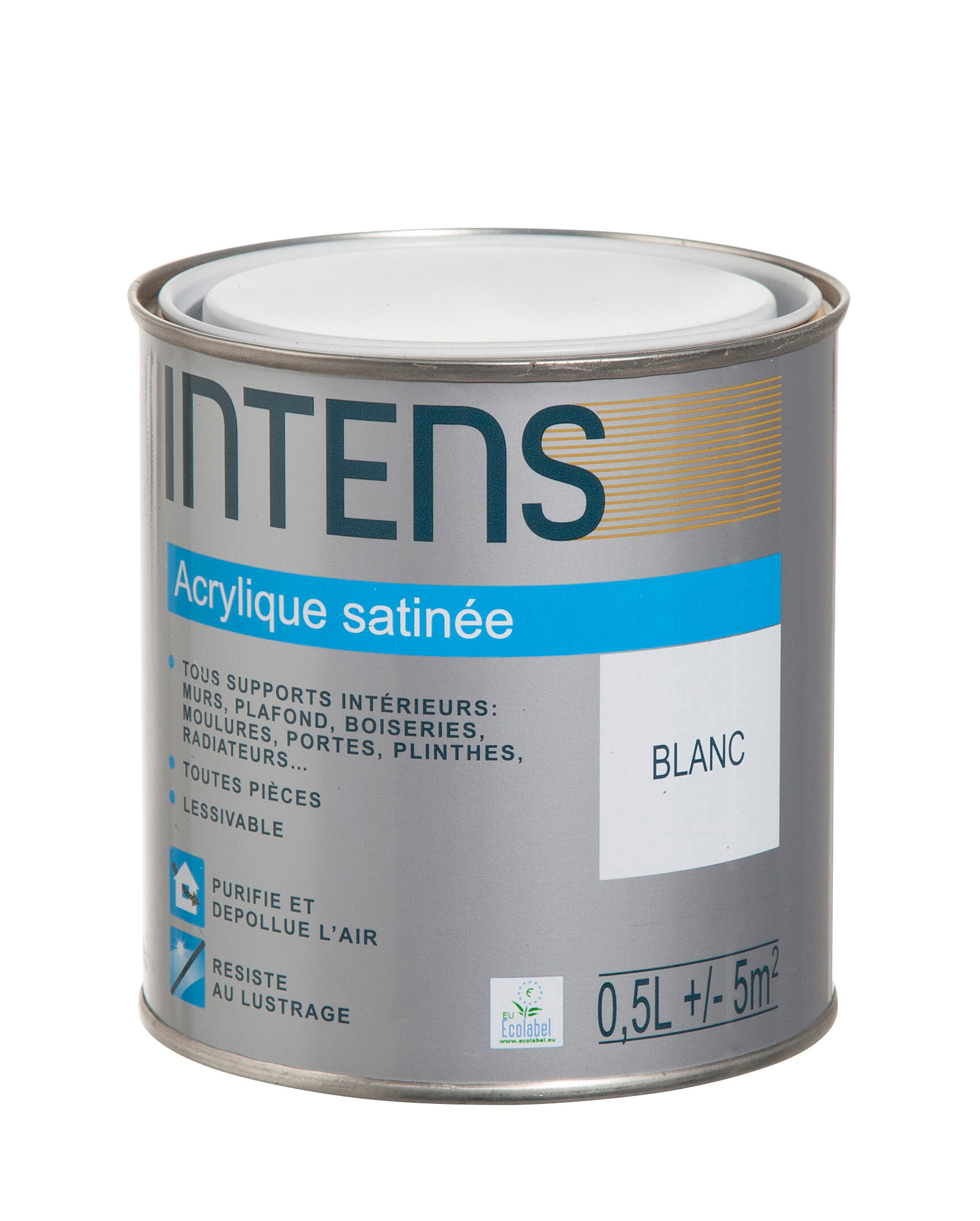 Peinture intérieure multi-supports acrylique monocouche satin blanc 0,5 L - INTENS