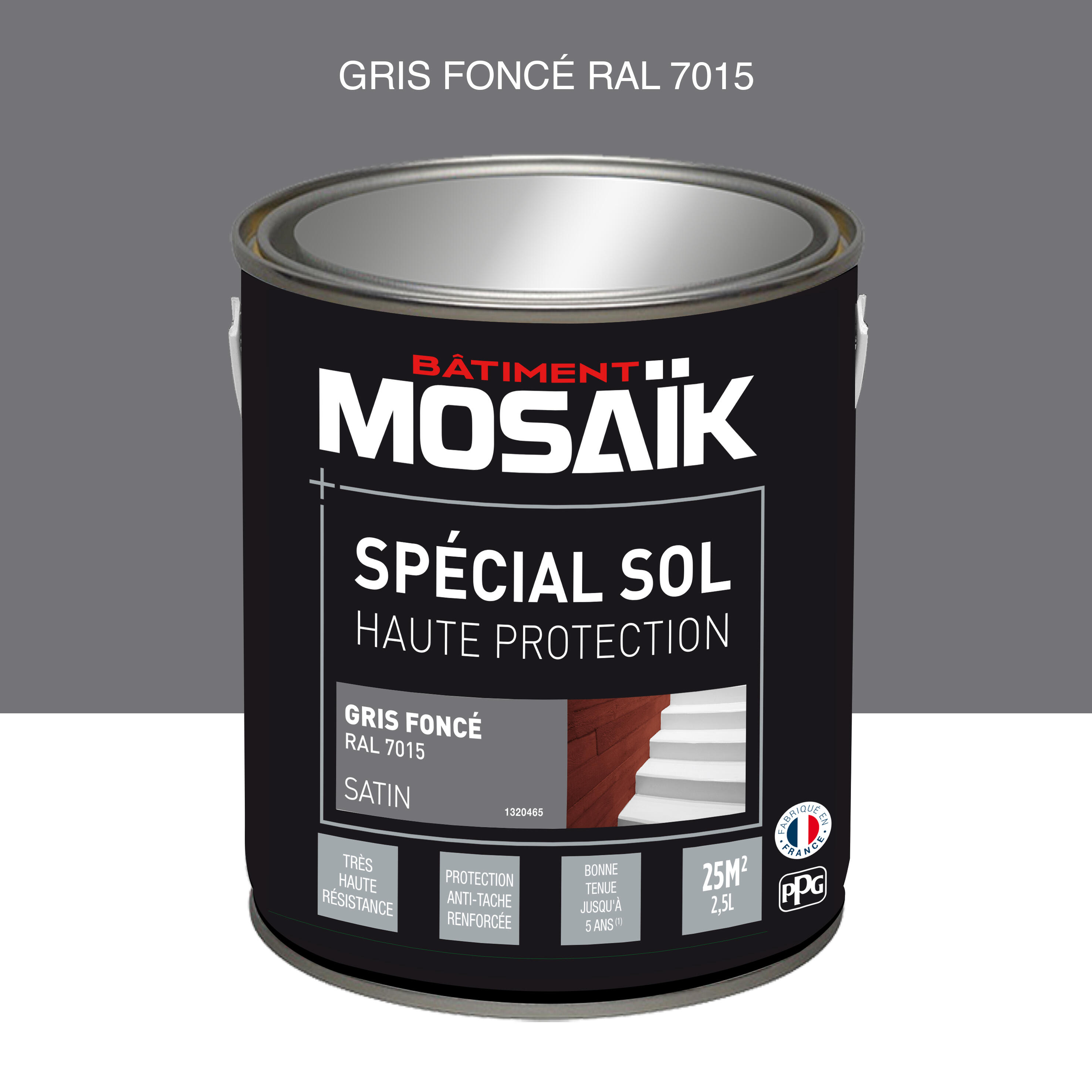 Peinture sol alkyde intérieur extérieur satin gris foncé 2,5 L - MOSAIK