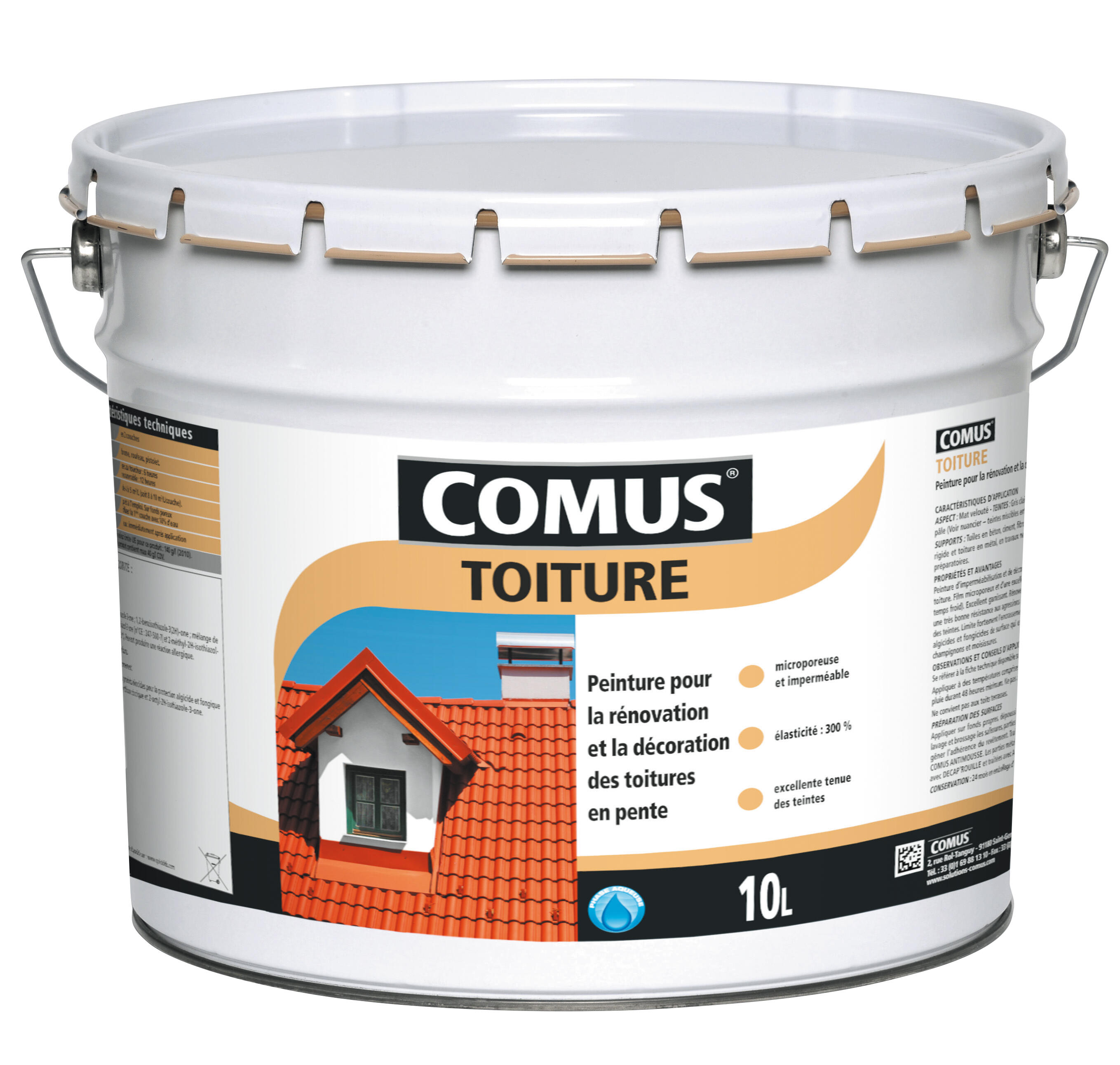 Peinture toiture décorative imperméable rouge brique 10 L - COMUS