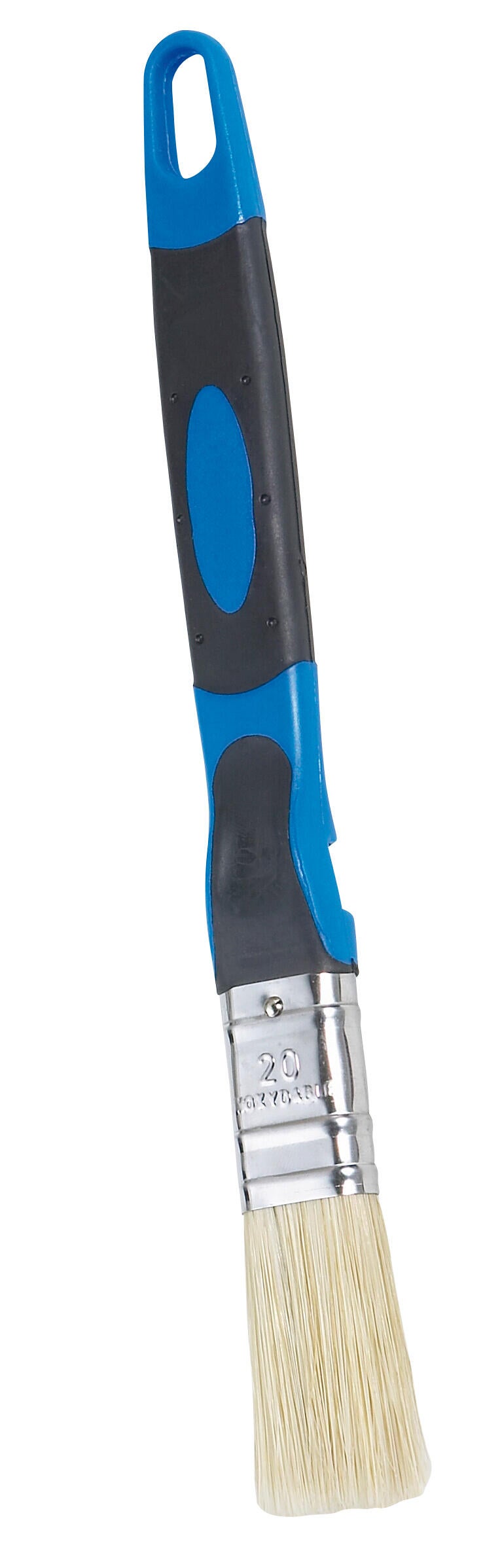 Brosse plate 30 mm. Manche bi-matière. Virole en inox. Mélange soie et fibres synthétiques blanches adaptées aux peintures en phase aqueuse. Brosse plate. Utilisation recommandée pour petites et moyennes surfaces. Très performante sur le traitement des bois, type volets et fenêtres.