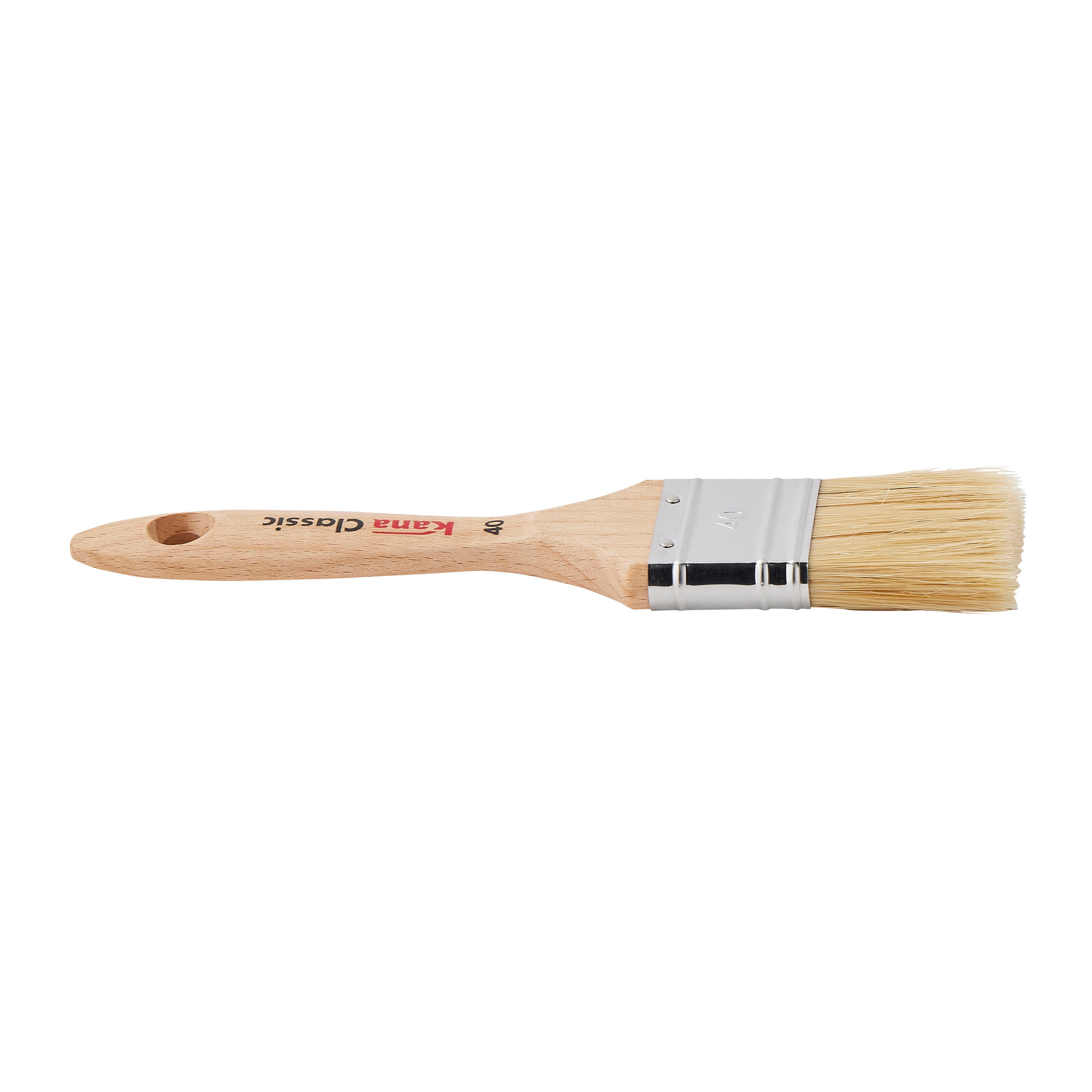 Brosse plate 40 mm. Manche en bois poncé vernis certifié. Virole en acier inoxydable. Mélange de fibres polyester et soies naturelles adaptées à tout type de peinture. Brosse plate. Utilisation recommandée pour petites et moyennes surfaces. Très performante sur le traitement des bois, type volets et fenêtres.