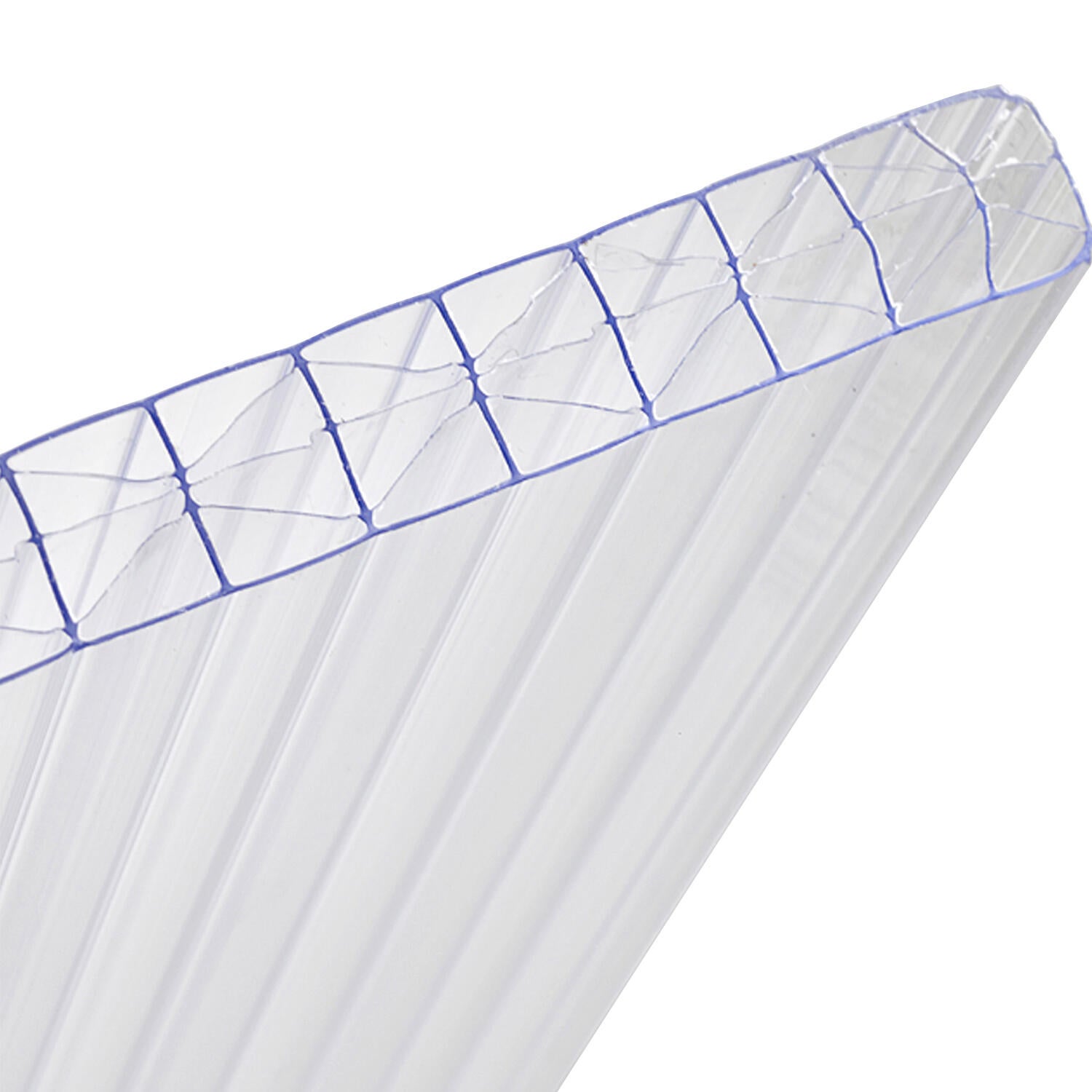 Plaque de toiture polycarbonate 16 mm clair. Dispose d'une couche d'absorption des rayons UV nocifs. Résistance entre -40 et +120 degrés. Transmission lumineuse 64%. (U=1.14 W/m²k)
