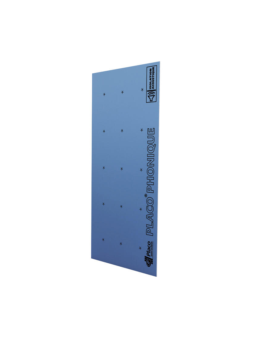 Plaque de plâtre PLACO® PHONIQUE BA 13 Plaque de plâtre acoustique à 2 bords amincis, pour tous types d'ouvrages. Les plus produit: • Hautes performances acoustiques : 50% de bruit en moins, soit un gain acoustique de +3 dB par rapport au même ouvrage en plaque standard • Facile à identifier : couleur bleue Caractéristiques: Ouvrages: Cloisonnement, Doublage intérieur de mur, Gaine technique, Habillage de mur, Plafond Plaque par destination: Plaques acoustiques Couleur du parement: Bleu Poids au m²: 11,80 Aspect: Lisse Composant principal: Plâtre Longueur (mm): 2500 Largeur (mm): 1200 Epaisseur (mm): 12,5