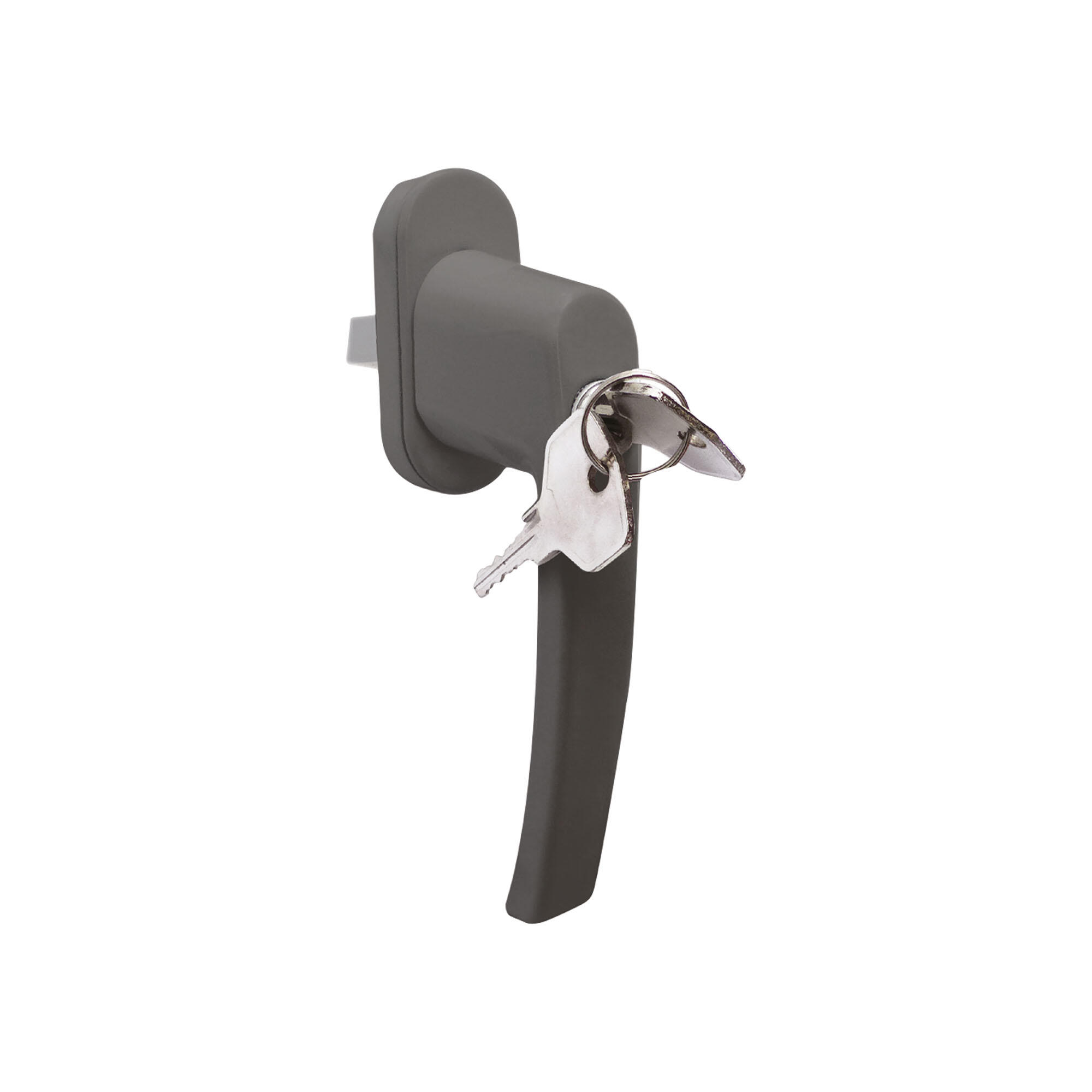 Poignée de fenêtre à clé en alliage d'aluminium moulé, Blanc RAL 9016, Cache vis PVC, Carré 7x35 mm, Piliers Ø 9 mm, Crantage 90°, Livrée avec vis M5, Durée présence pièces détachée : 2 Mention légales : -