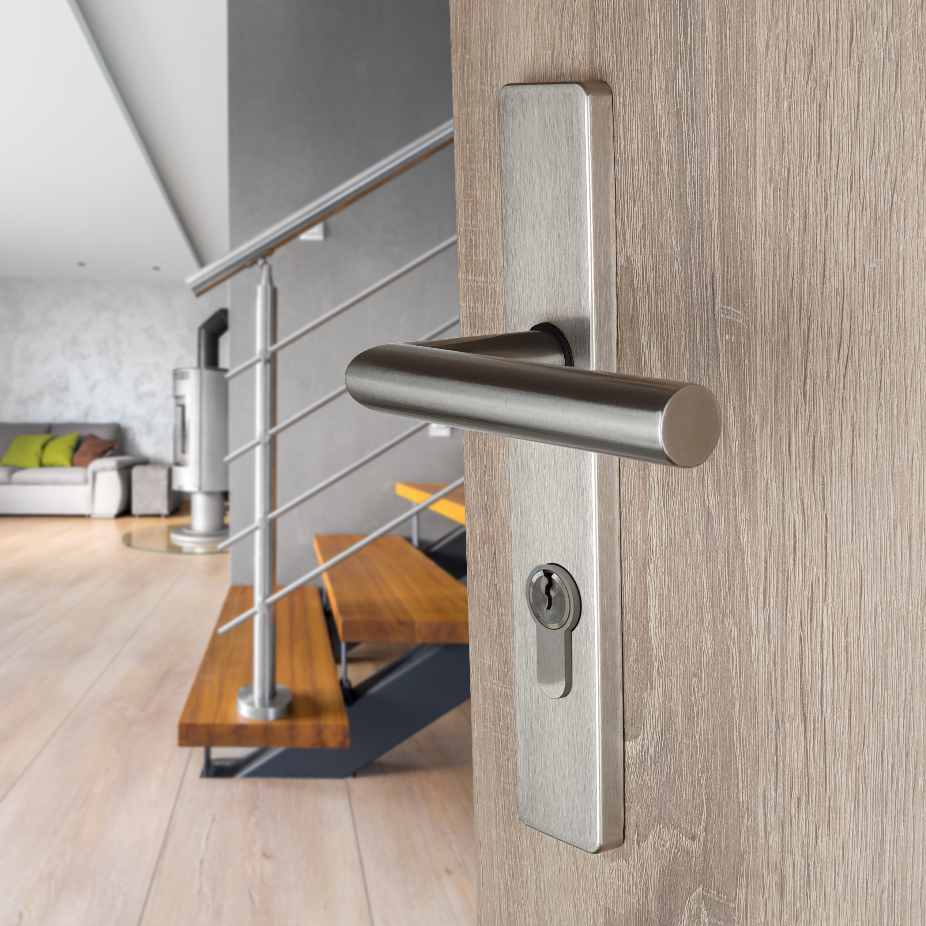 Poignée de porte sur plaque grise mat entraxe ajustable Clé en I EDISON DUALFIT x2