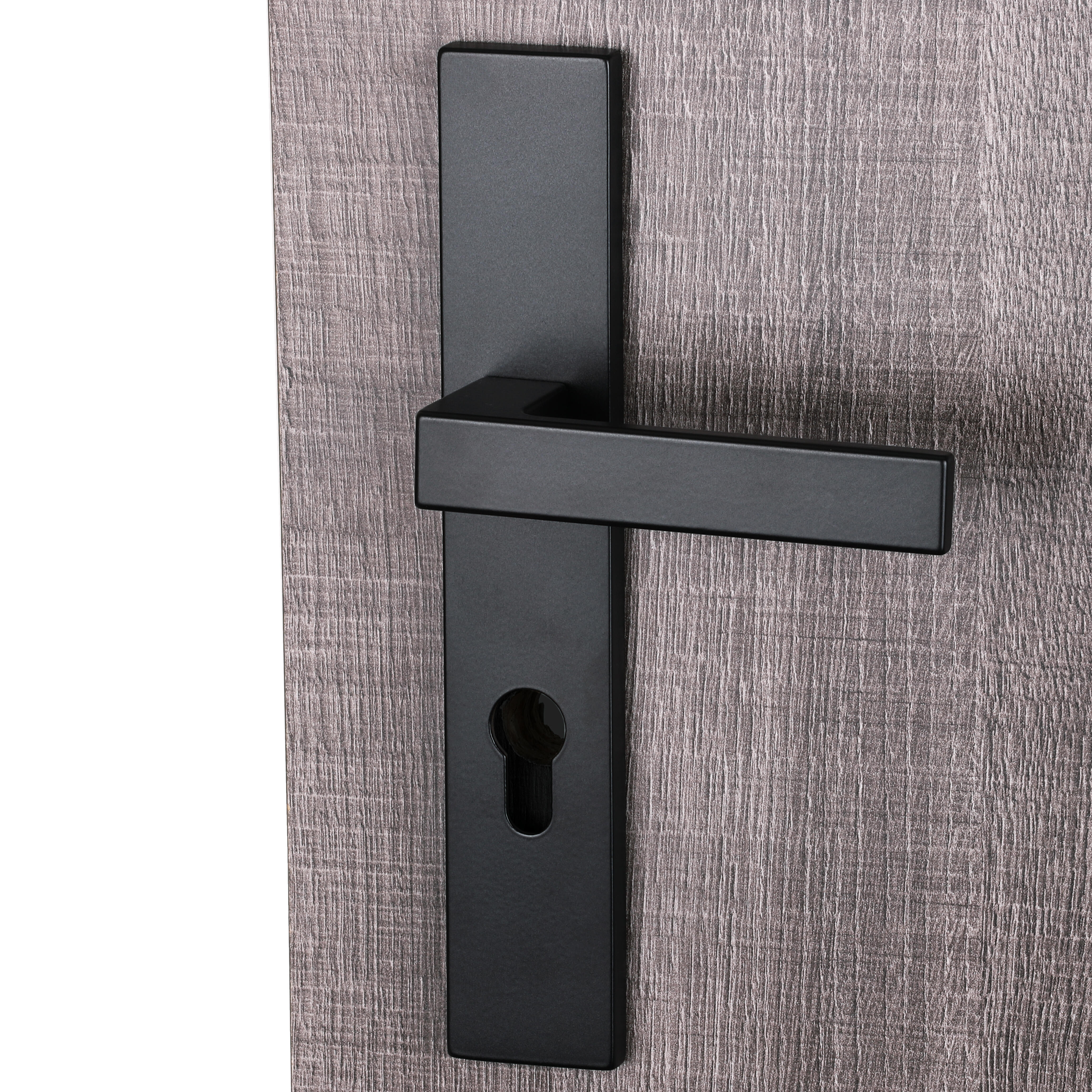 Poignée de porte sur plaque noire mat entraxe 195 mm Clé en I LOFT x2